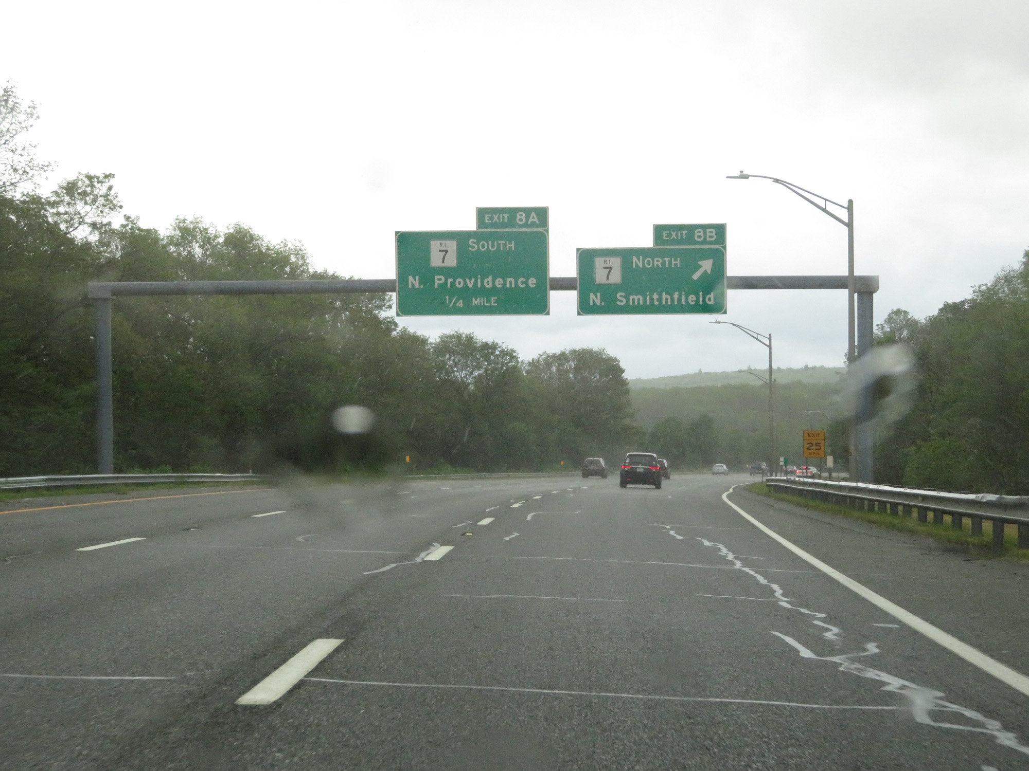 Interstate 295 South at Exit 8B: RI 7 North - North Smithfield (Photo taken 8/5/17).