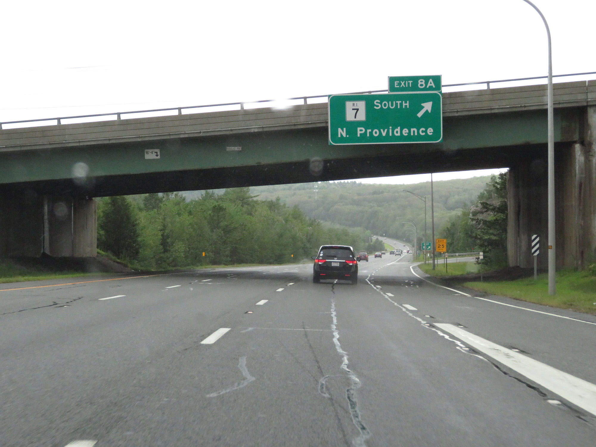 Interstate 295 South at Exit 8A: RI 7 South - North Providence (Photo taken 8/5/17).