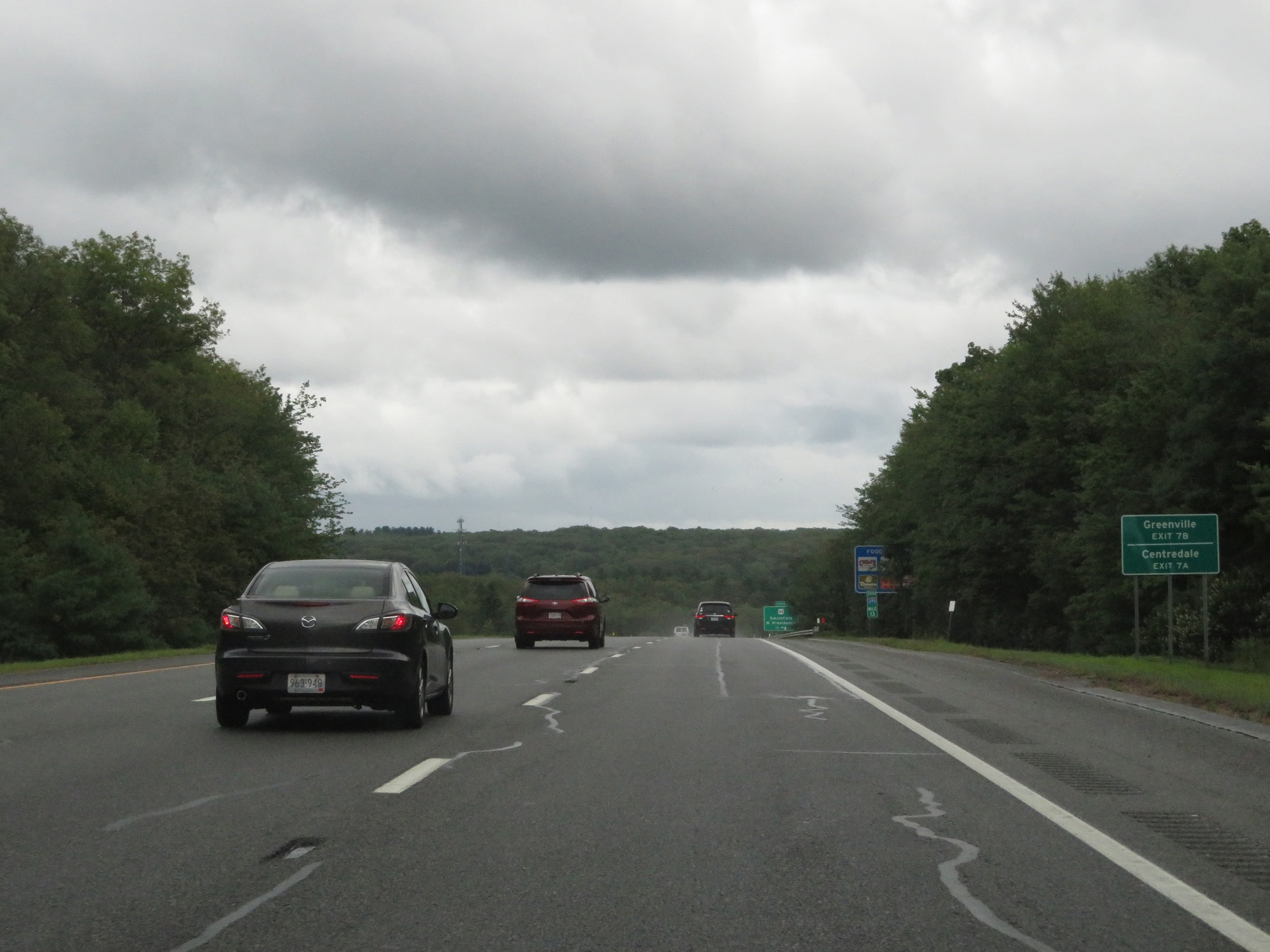 Take Exit 7B to Greenville. Take Exit 7A to Centredale. (Photo taken 8/5/17).