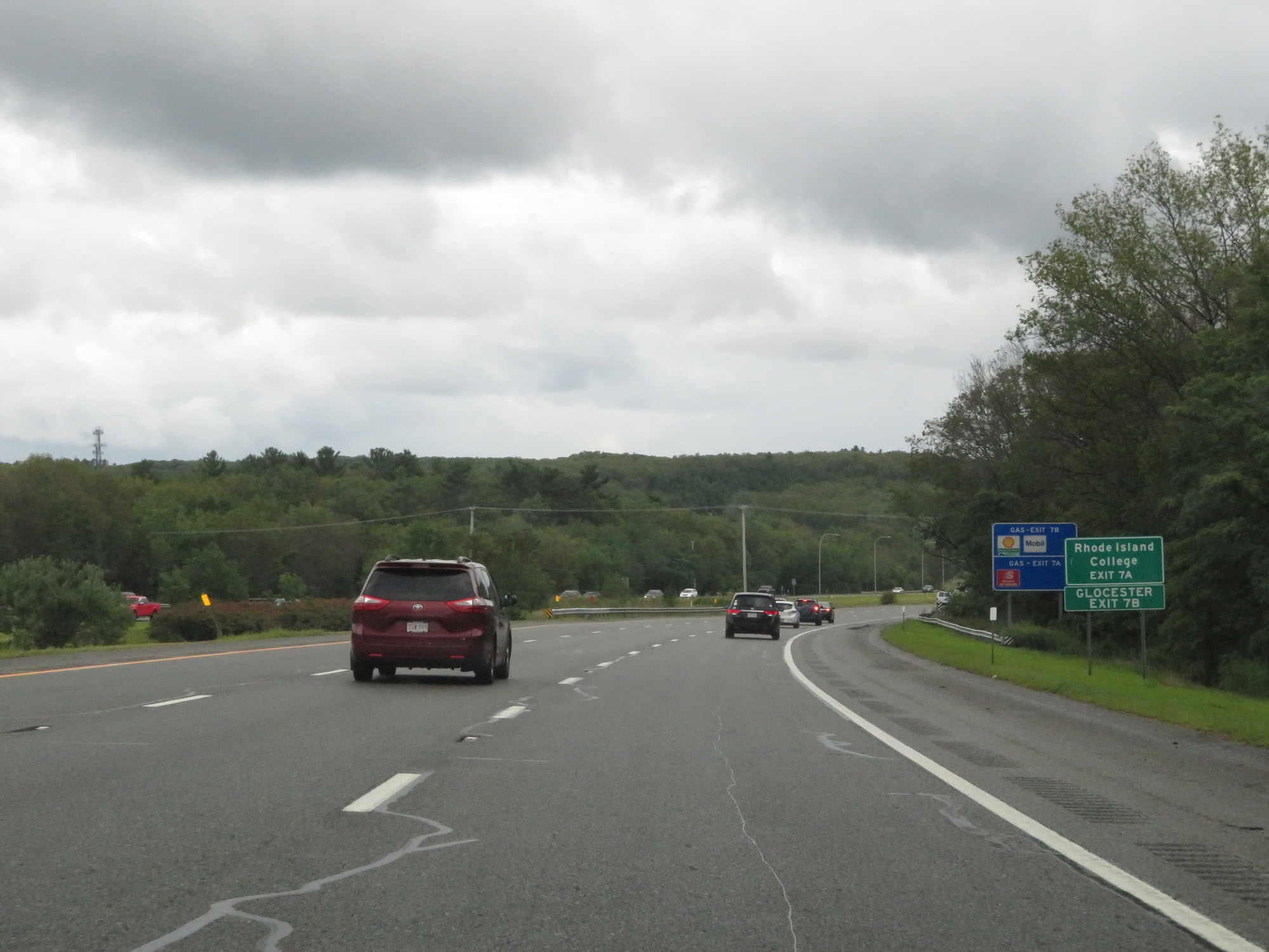 Take Exit 7A to Rhode Island College and Exit 7B to Glocester. (Photo taken 8/5/17).