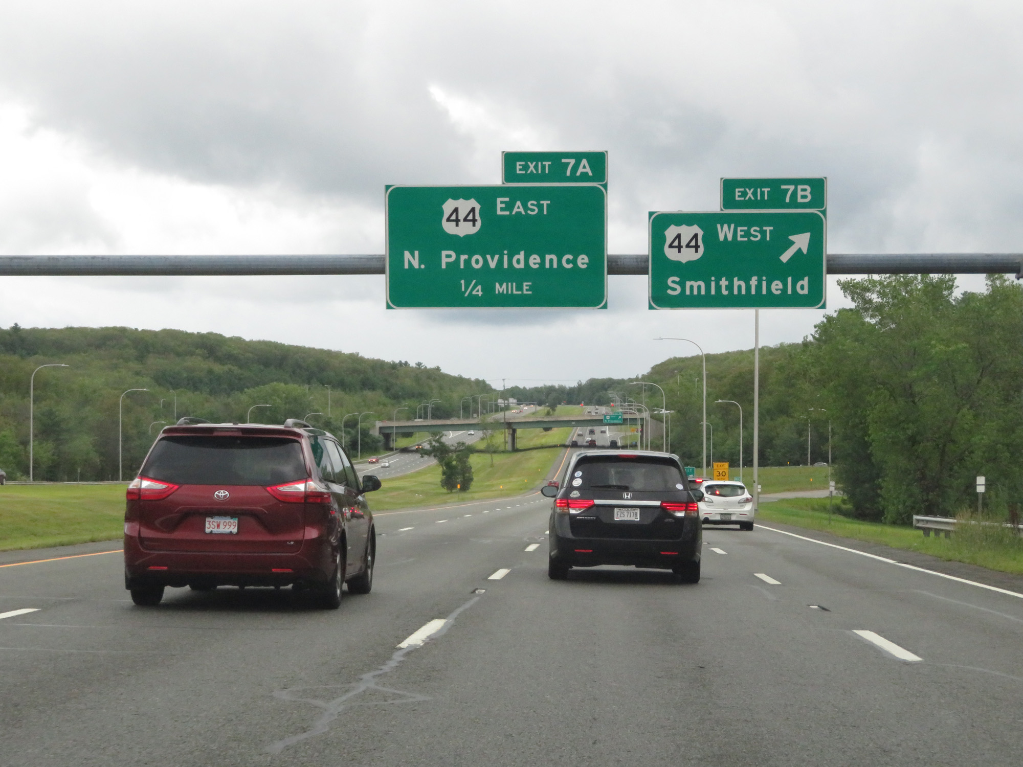 Interstate 295 South at Exit 7B: US 44 West - Smithfield (Photo taken 8/5/17).