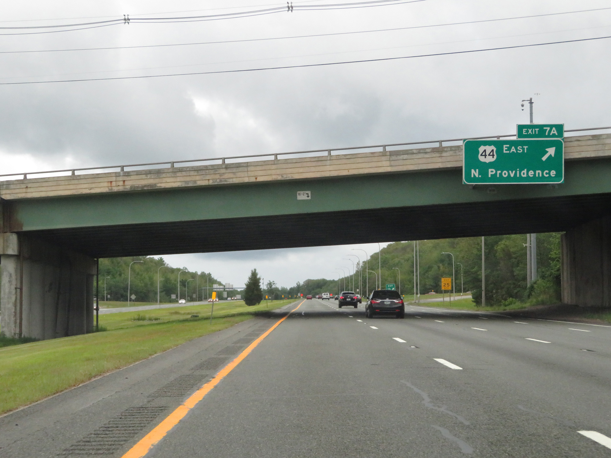 Interstate 295 South at Exit 7A: US 44 East - North Providence (Photo taken 8/5/17).