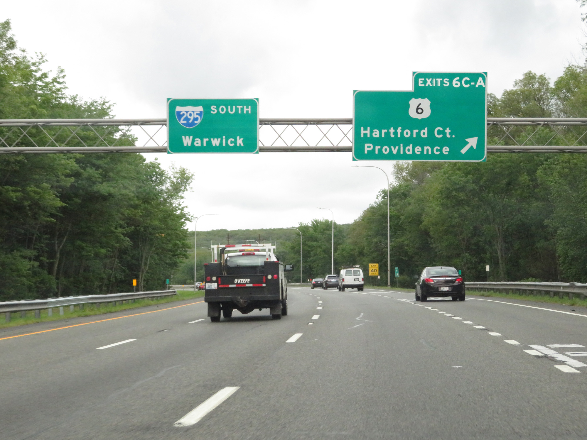 Interstate 295 South at Exits 6C-A: US 6 - Hartford, CT / Providence (Photo taken 8/5/17).