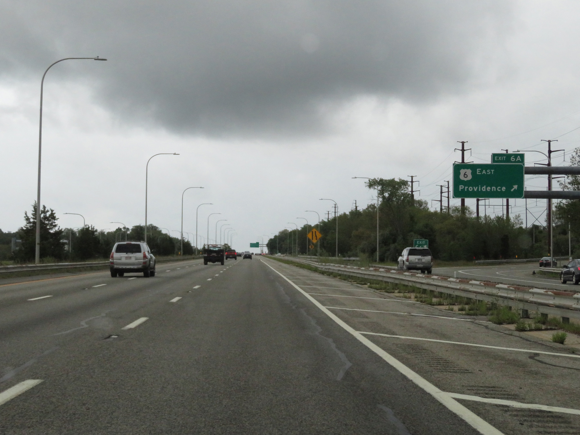 Interstate 295 South at Exit 6A: US 6 East - Providence (Photo taken 8/5/17).