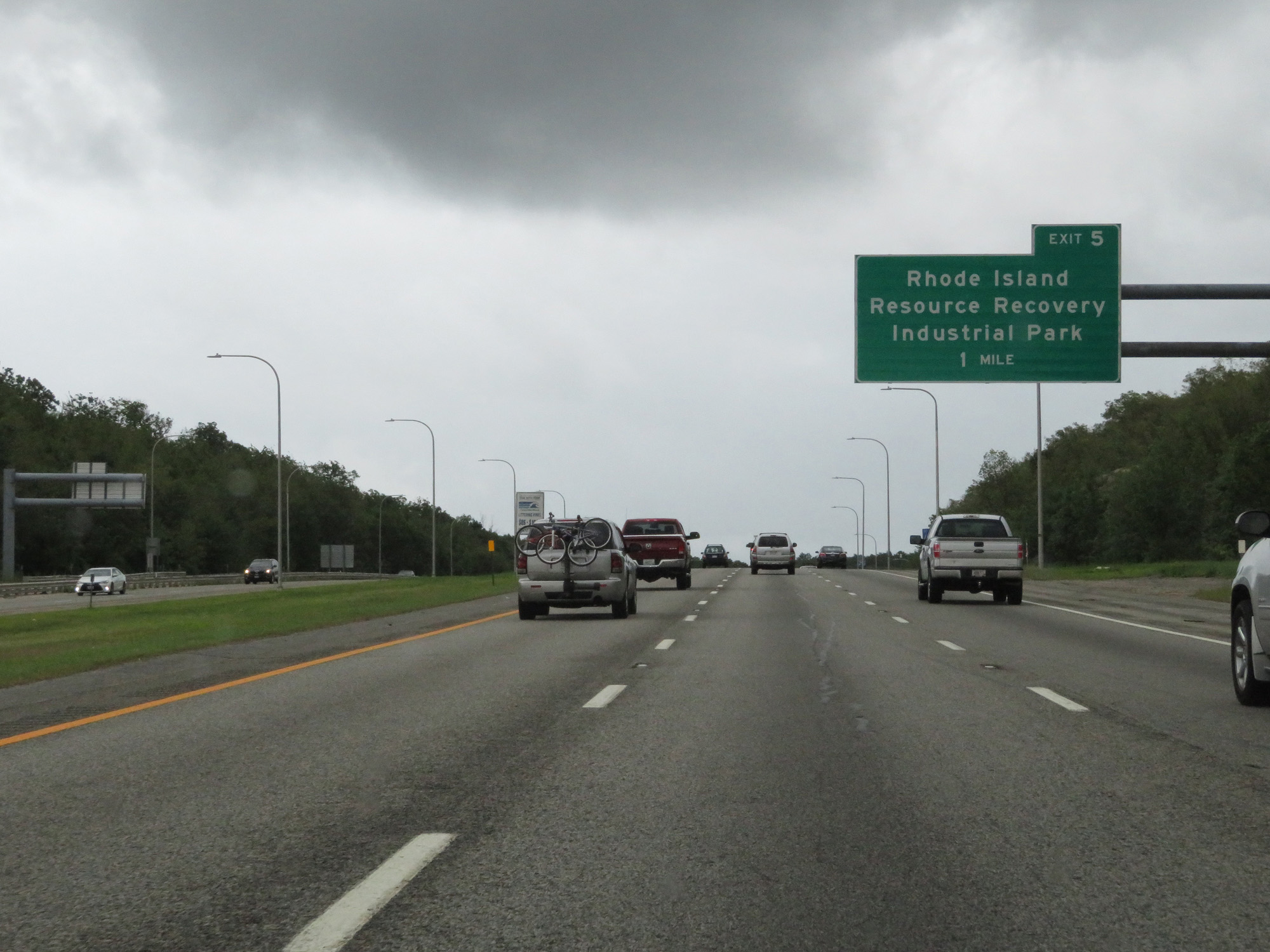 Interstate 295 South at Exit 5: Rhode Island Resource Recovery Industrial Park (Photo taken 8/5/17).