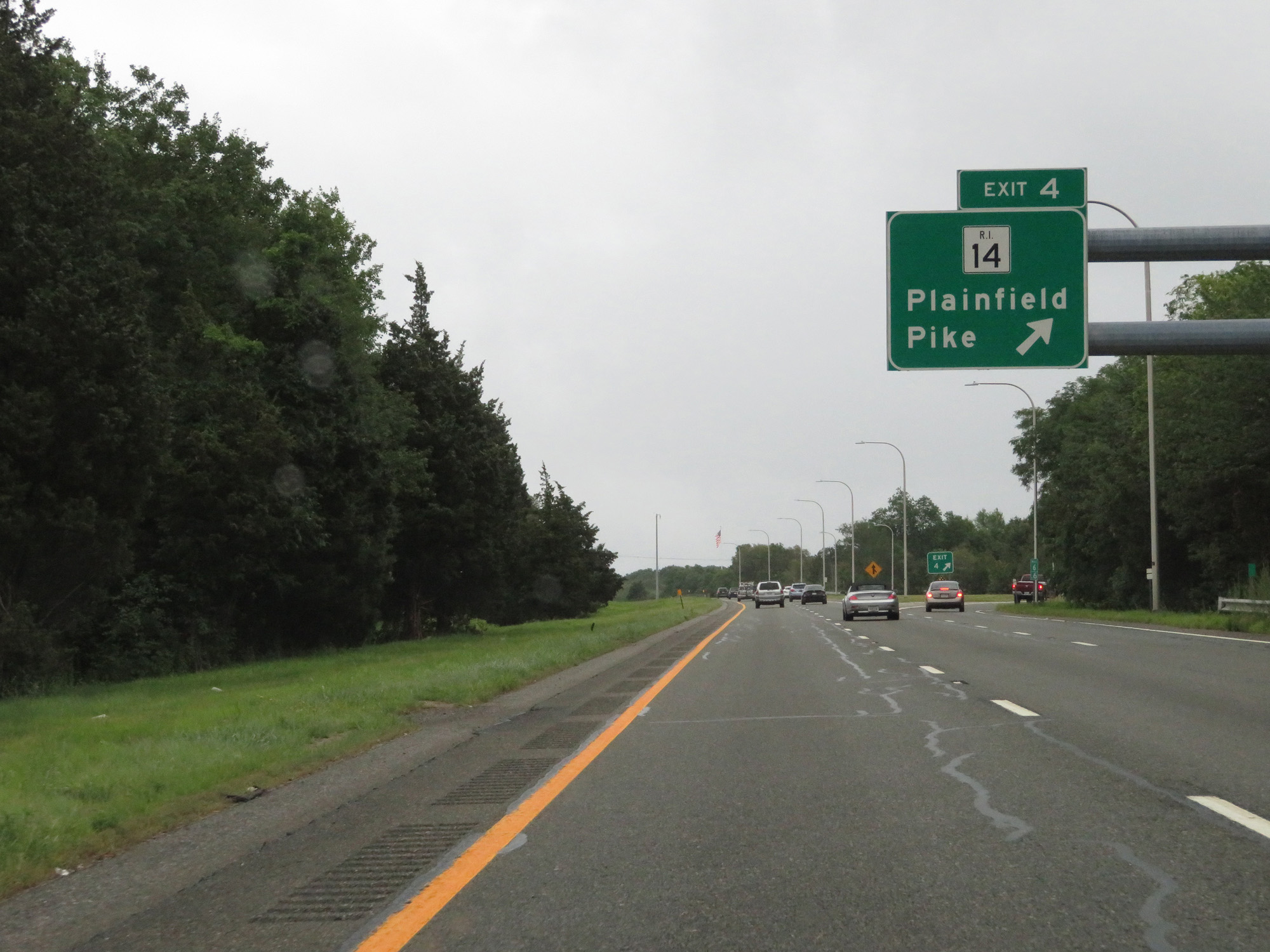 Interstate 295 South at Exit 4: RI 14 - Plainfield Pike (Photo taken 8/5/17).