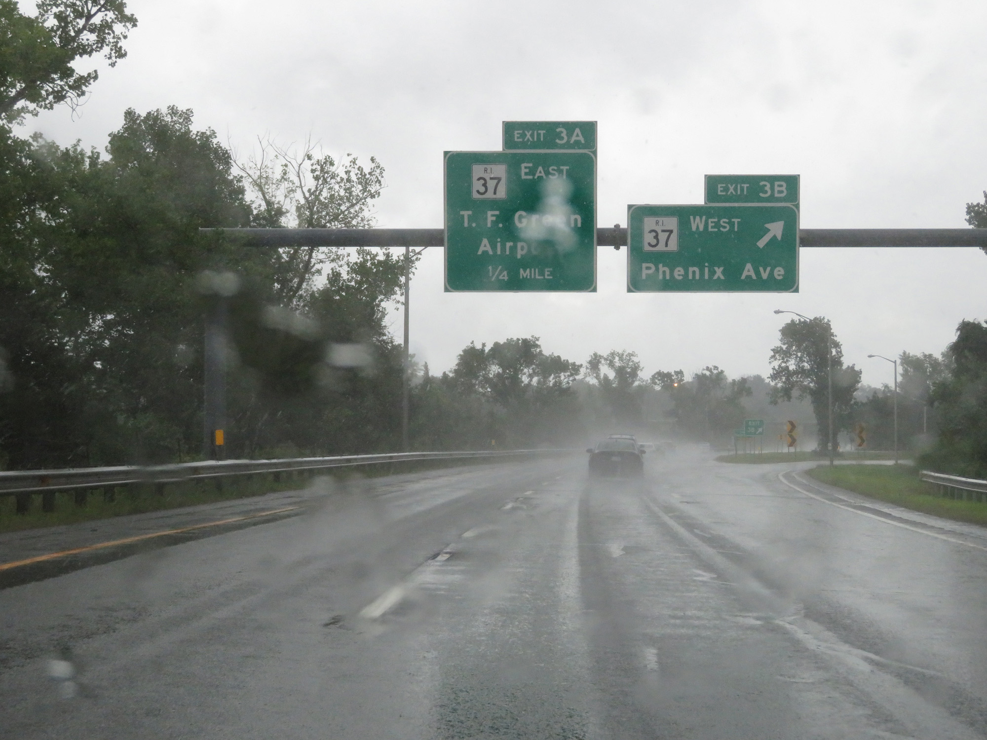 Interstate 295 South at Exit 3A: RI 37 East - T.F. Green Airport (Photo taken 8/5/17).