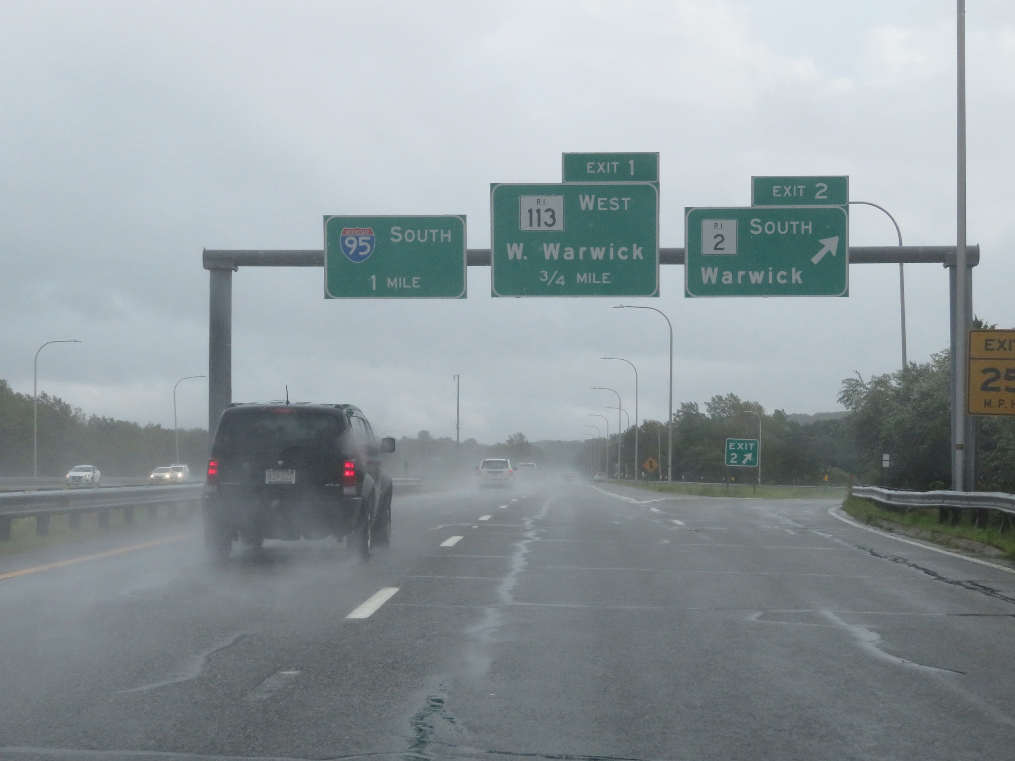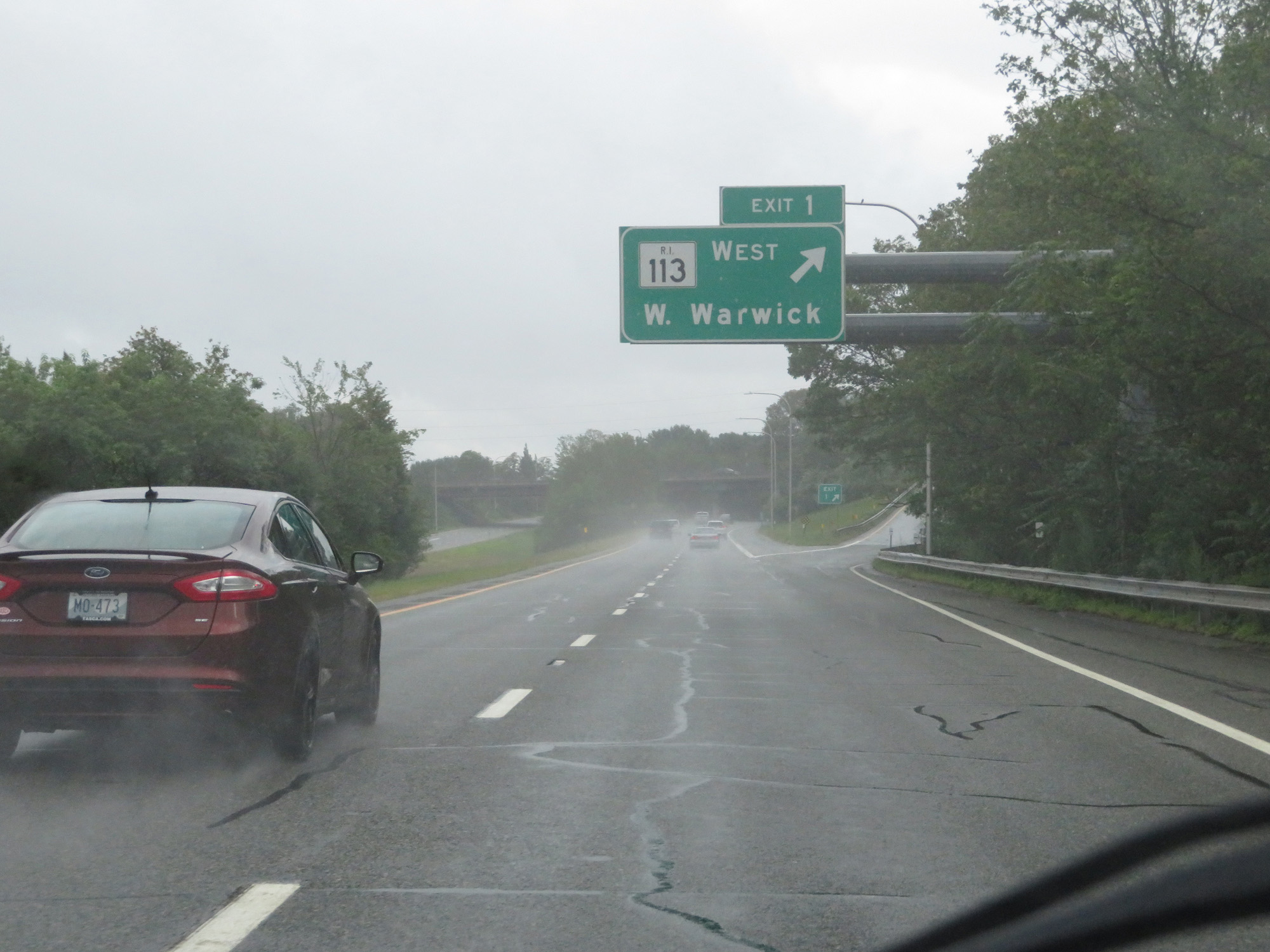 Interstate 295 South at Exit 1: RI 113 West - West Warwick (Photo taken 8/5/17).