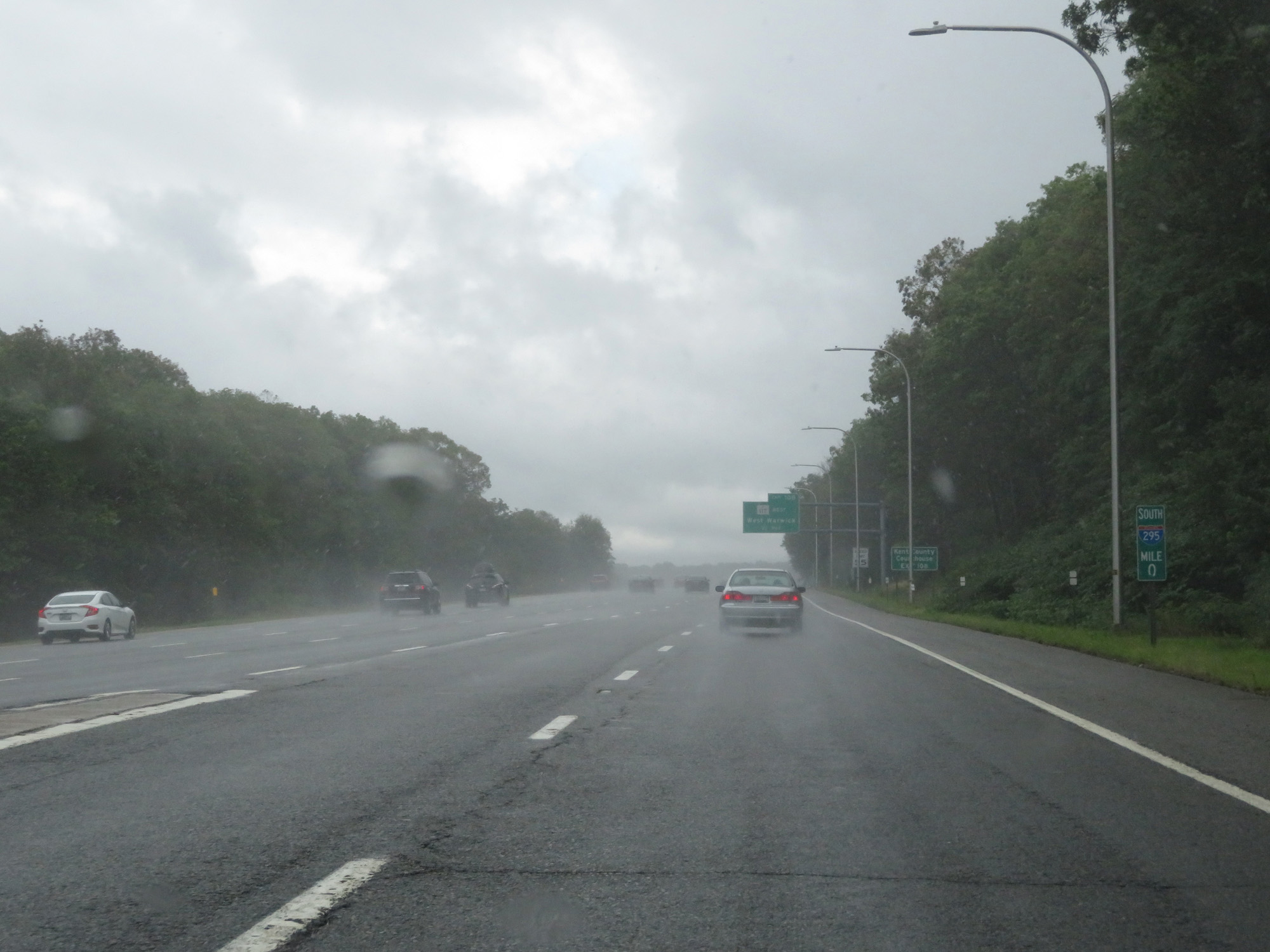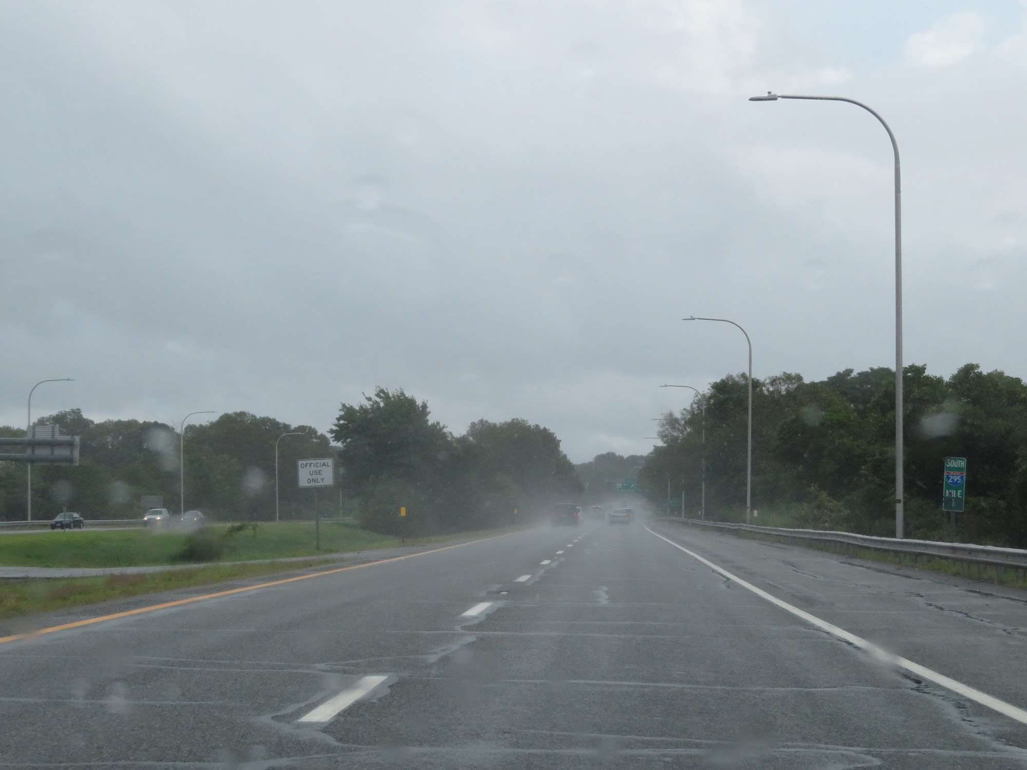Interstate 295 South approaching its southern terminus at the junction of Interstate 95 South in Warwick. (Photo taken 8/5/17).