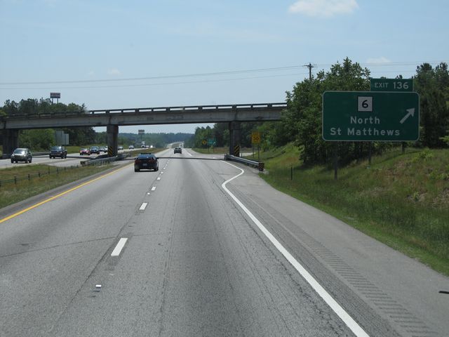 Interstate 26 East at Exit 136: SC 6 - North / St Matthews (Photo taken 4/24/11). |