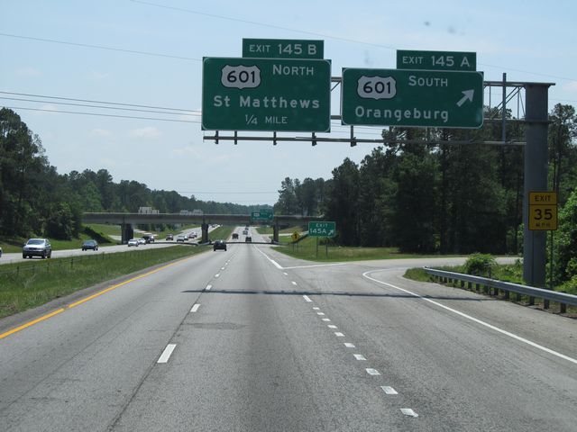 Interstate 26 East at Exit 145B: US 601 North - St Matthews (Photo taken 4/24/11). |