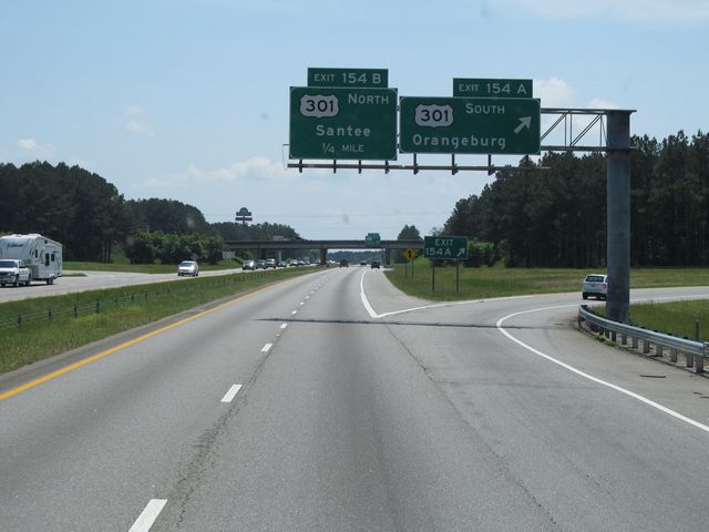Interstate 26 East at Exit 154B: US 301 North - Santee (Photo taken 4/24/11). |
