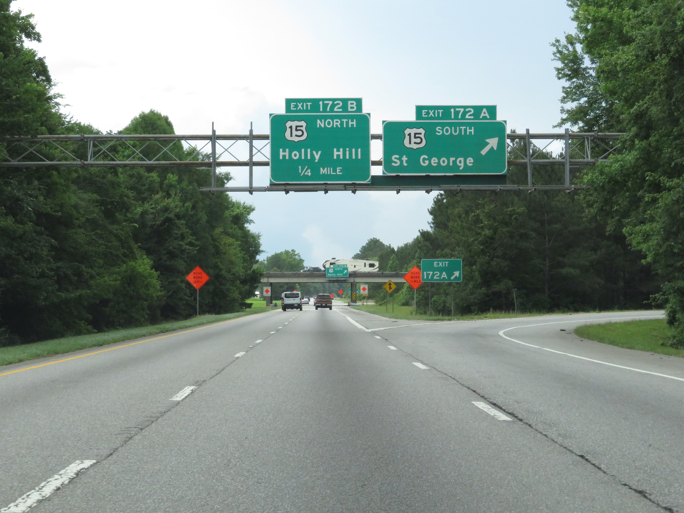 Interstate 26 East at Exit 172A: US 15 South - St. George (Photo taken 5/25/18). |