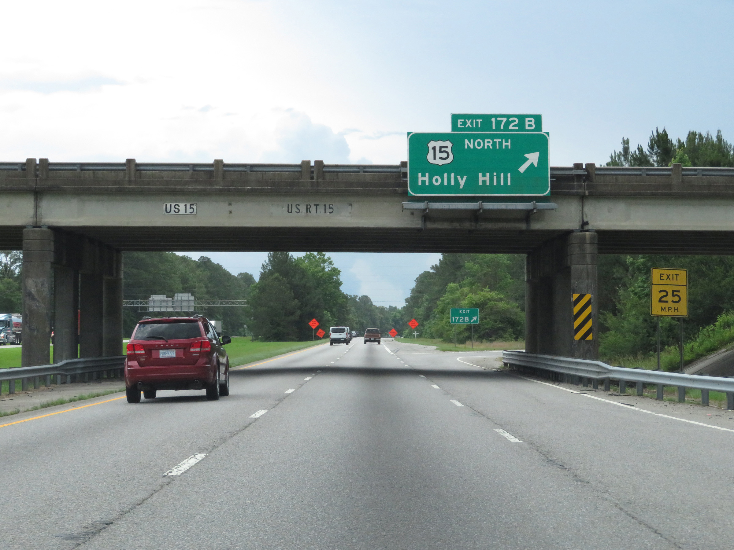 Interstate 26 East at Exit 172B: US 15 North - Holly Hill (Photo taken 5/25/18). |