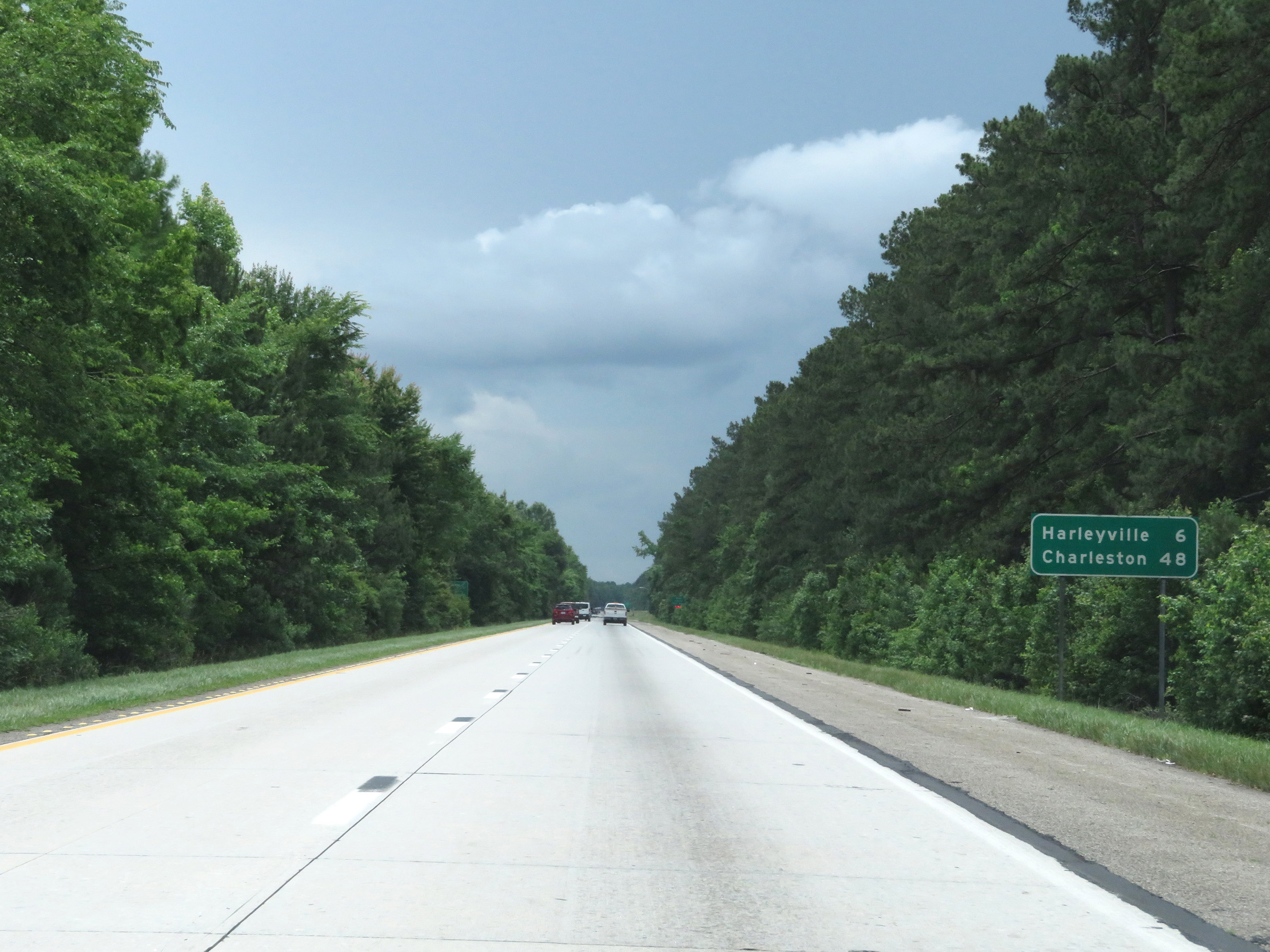 Interstate 26 East at Exit 177: SC 453 - Harleyville / Holly Hill (Photo taken 5/25/18). |