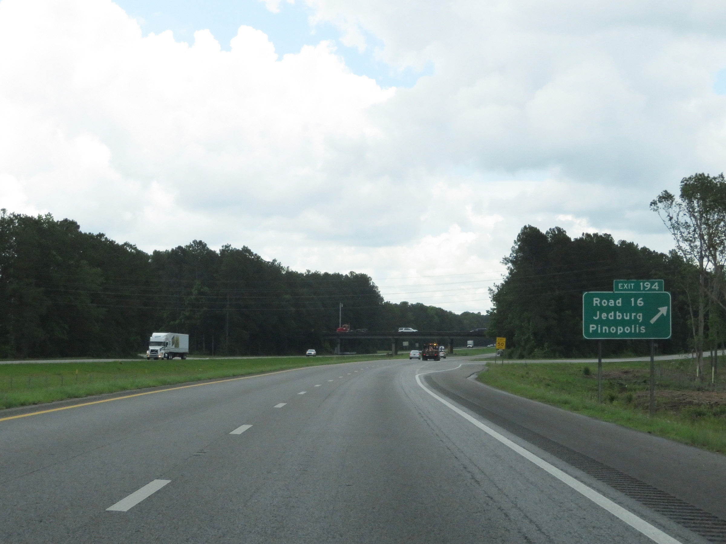 Interstate 26 East at Exit 194: Road 16 / Jedburg / Pinopolis (Photo taken 5/25/18). |