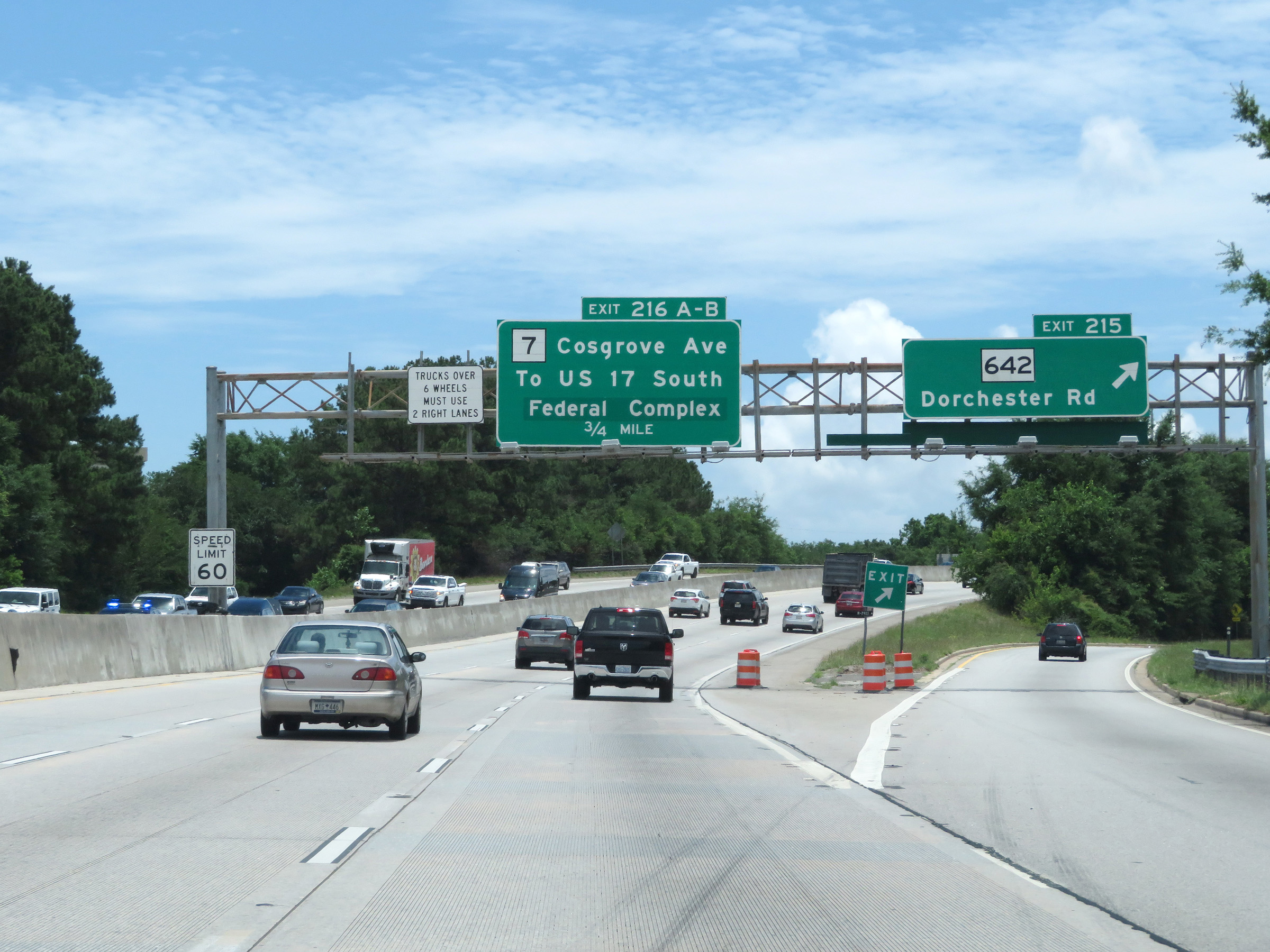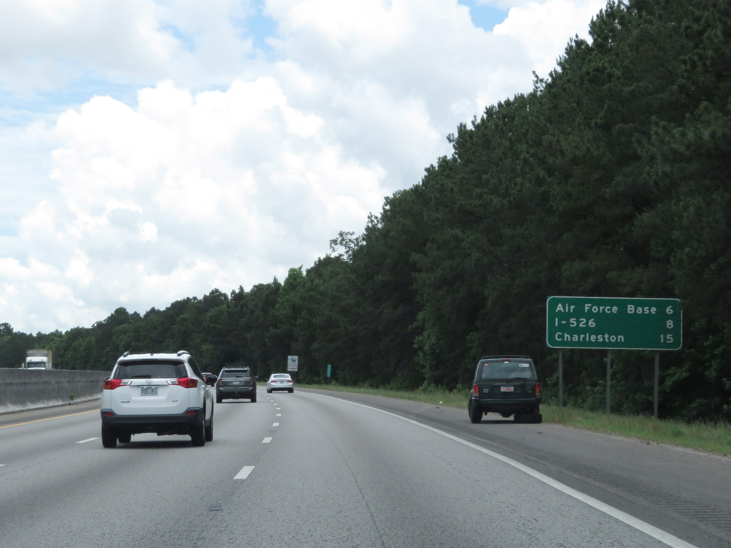 Beyond the junction of Interstate 95, Interstate 26 East enters Dorchester County. (Photo taken 5/25/18). |