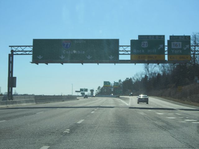 Interstate 77 South at Exit 82C: SC 161 - York; Exits 82B-A: US 21 - Rock Hill (Photo taken 1/22/11). |