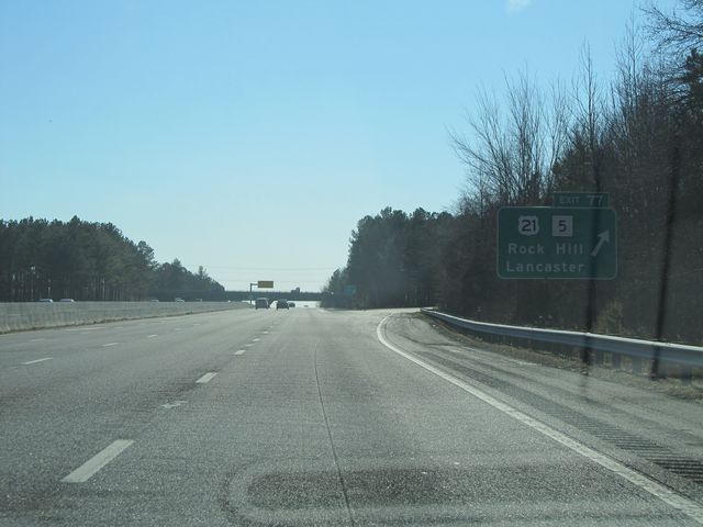 Interstate 77 South at Exit 77: US 21 / SC 5 - Rock Hill / Lancaster (Photo taken 1/22/11). |
