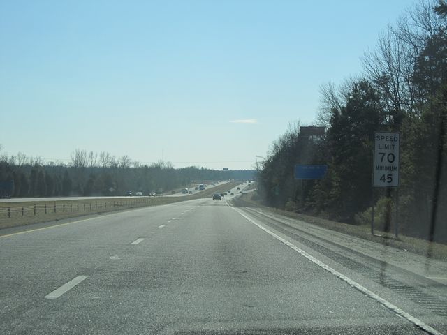 Speed limit sign near mile marker 76. Finally, after 14 miles into South Carolina, the speed limit is raised to 70 mph. (Photo taken 1/22/11). |