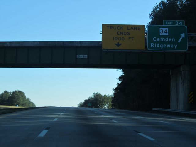 Interstate 77 South at Exit 34: SC 34 - Camden / Ridgeway (Photo taken 1/22/11). |