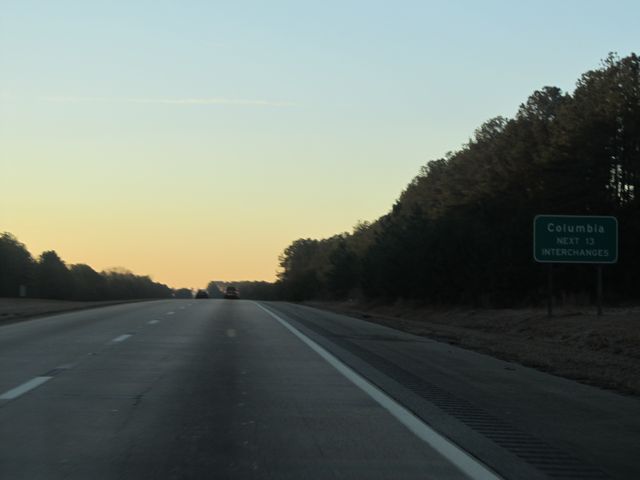 All of the next 13 interchanges will get you to Columbia. (Photo taken 1/23/11). |