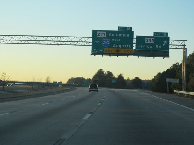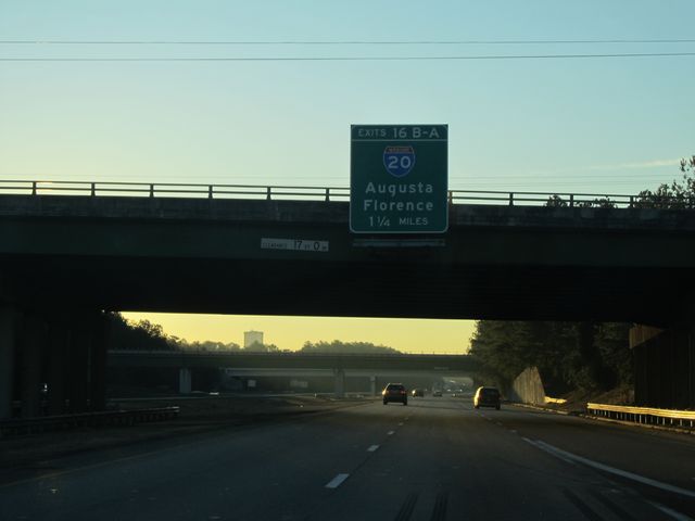 Interstate 77 South at Exit 16B: Interstate 20 West - Augusta (Photo taken 1/23/11). |