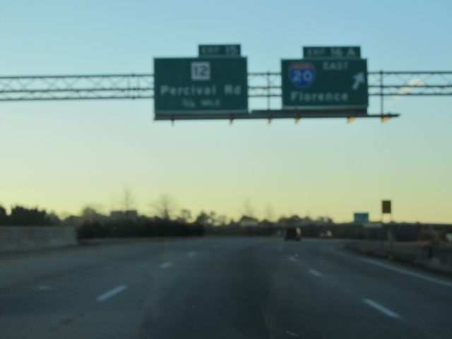 Interstate 77 South at Exit 16A: Interstate 20 East - Florence (Photo taken 1/23/11). |