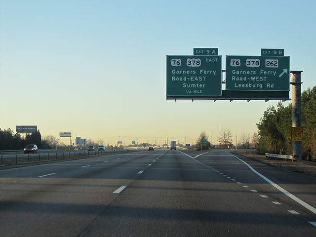 Interstate 77 South at Exit 9B: US 76 / US 378 / SC 262 - Garners Ferry Rd West / Leesburg Rd (Photo taken 1/23/11). |