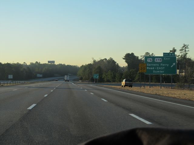 Interstate 77 South at Exit 9A: US 76 / US 378 East - Garners Ferry Rd East / Sumter (Photo taken 1/23/11). |