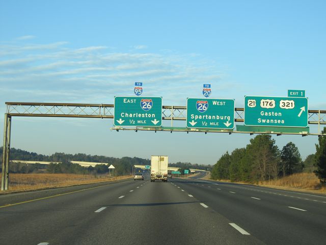 Interstate 77 South at Exit 1: US 21 / US 176 / US 321 - Gaston / Swansea (Photo taken 1/23/11). |
