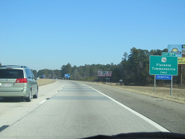 Interstate 95 North at Exit 157: US 76 - Florence / Timmonsville (Photo taken 1/30/11). |