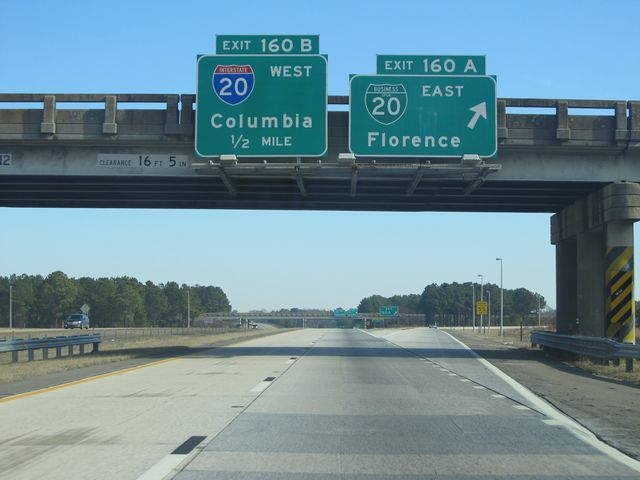 Interstate 95 North at Exit 160B: Interstate 20 West - Columbia (Photo taken 1/30/11). |