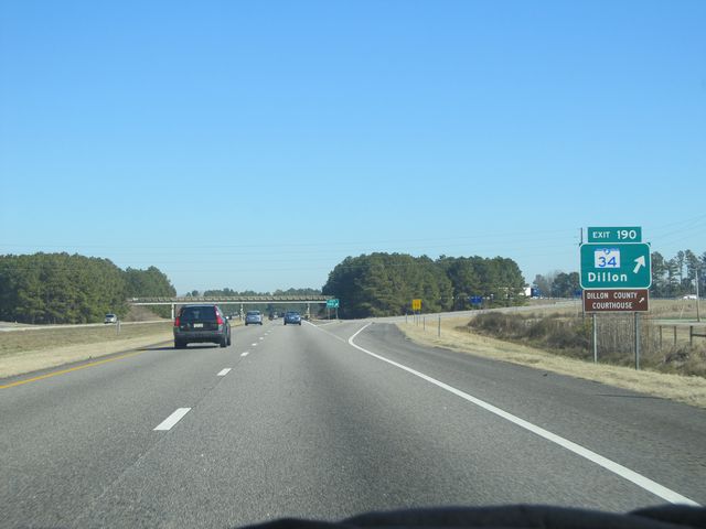 Interstate 95 North at Exit 190: SC 34 - Dillon (Photo taken 1/30/11). |
