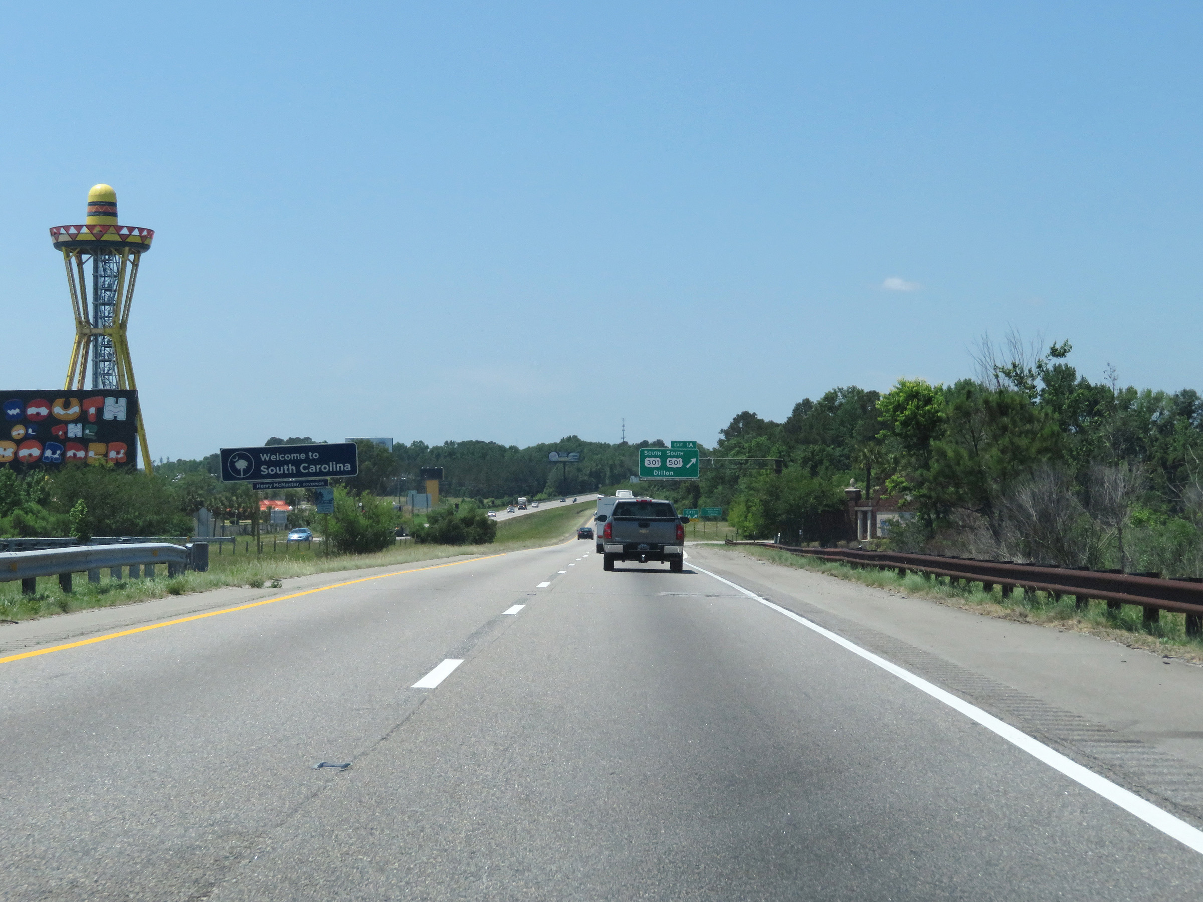 As Interstate 95 South approaches the Georgia border, this sign thanks you for visiting South Carolina. (Photo taken 5/20/17). |