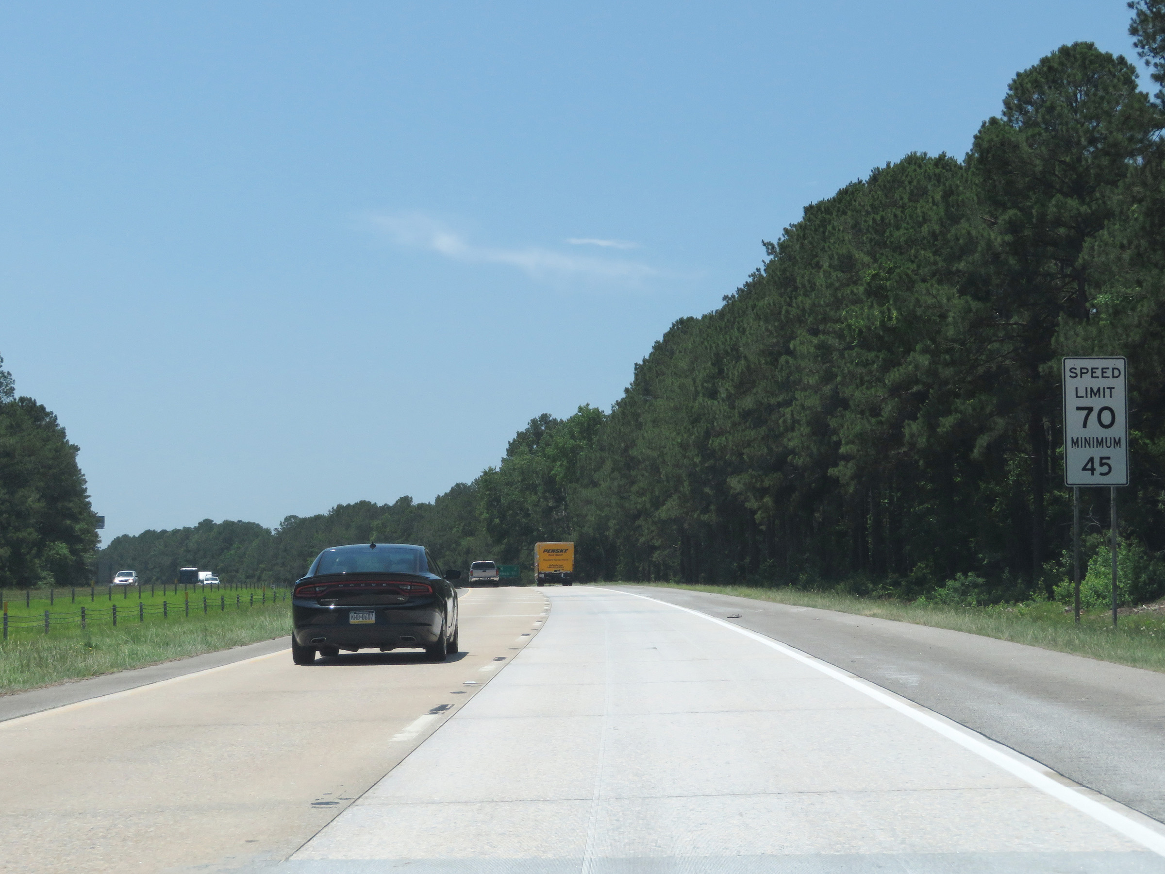 The speed limits remain 70 mph maximum and 45 mph minimum. These are the standard speed limits on most rural Interstate highways in South Carolina. (Photo taken 5/20/17). |