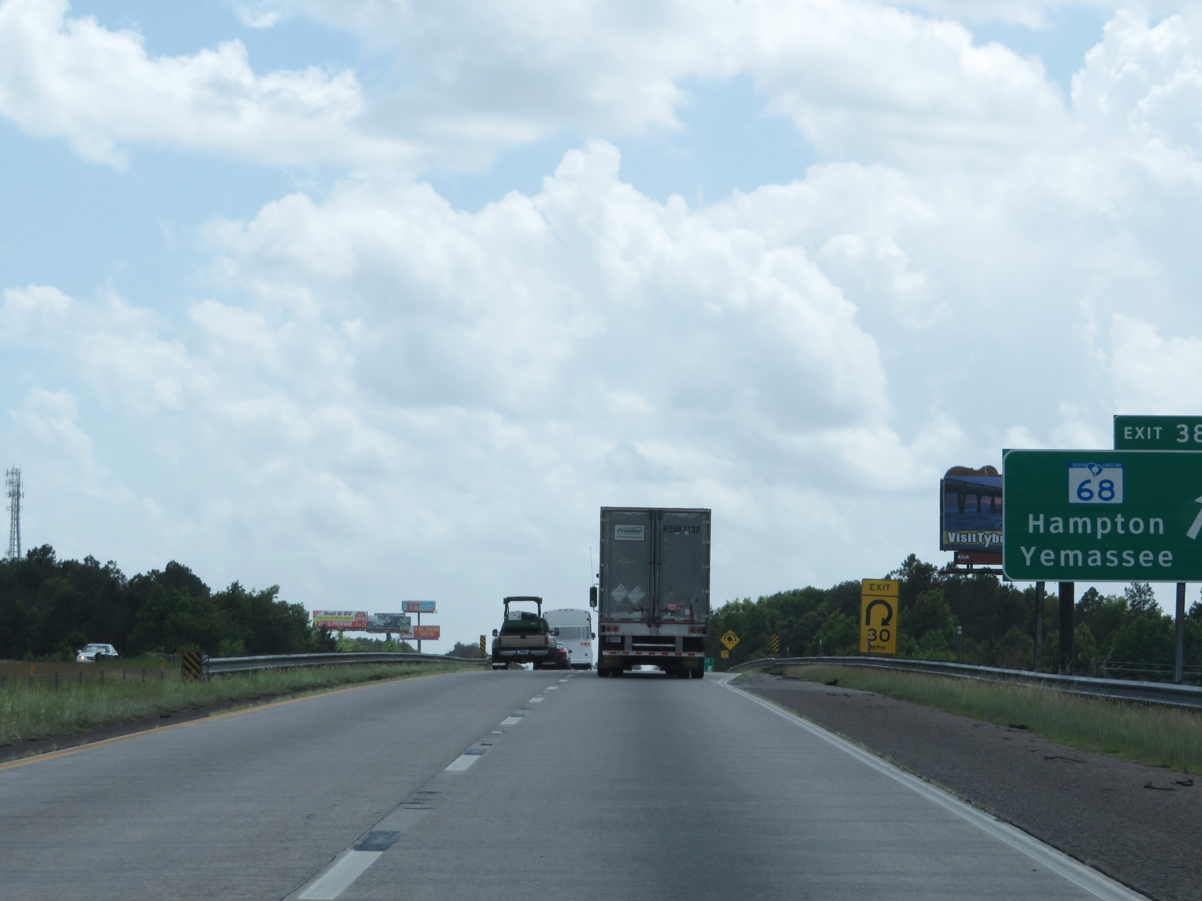 Interstate 95 South at Exit 38: SC 68 - Hampton / Yemassee (Photo taken 5/20/17). |