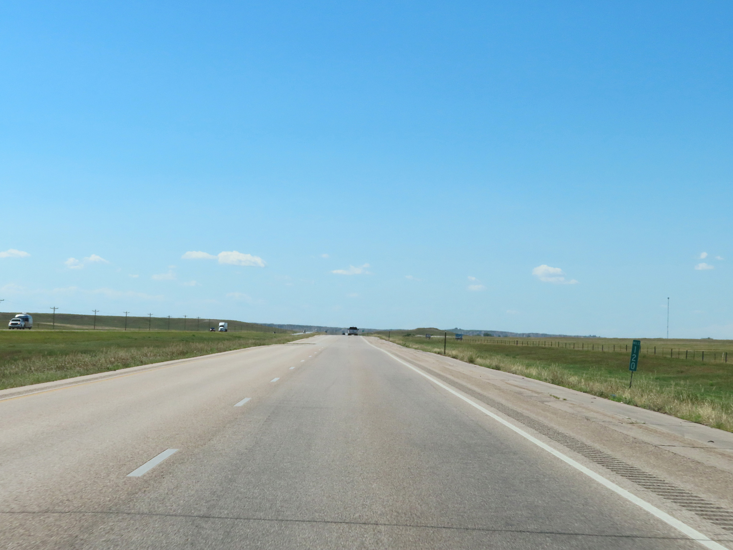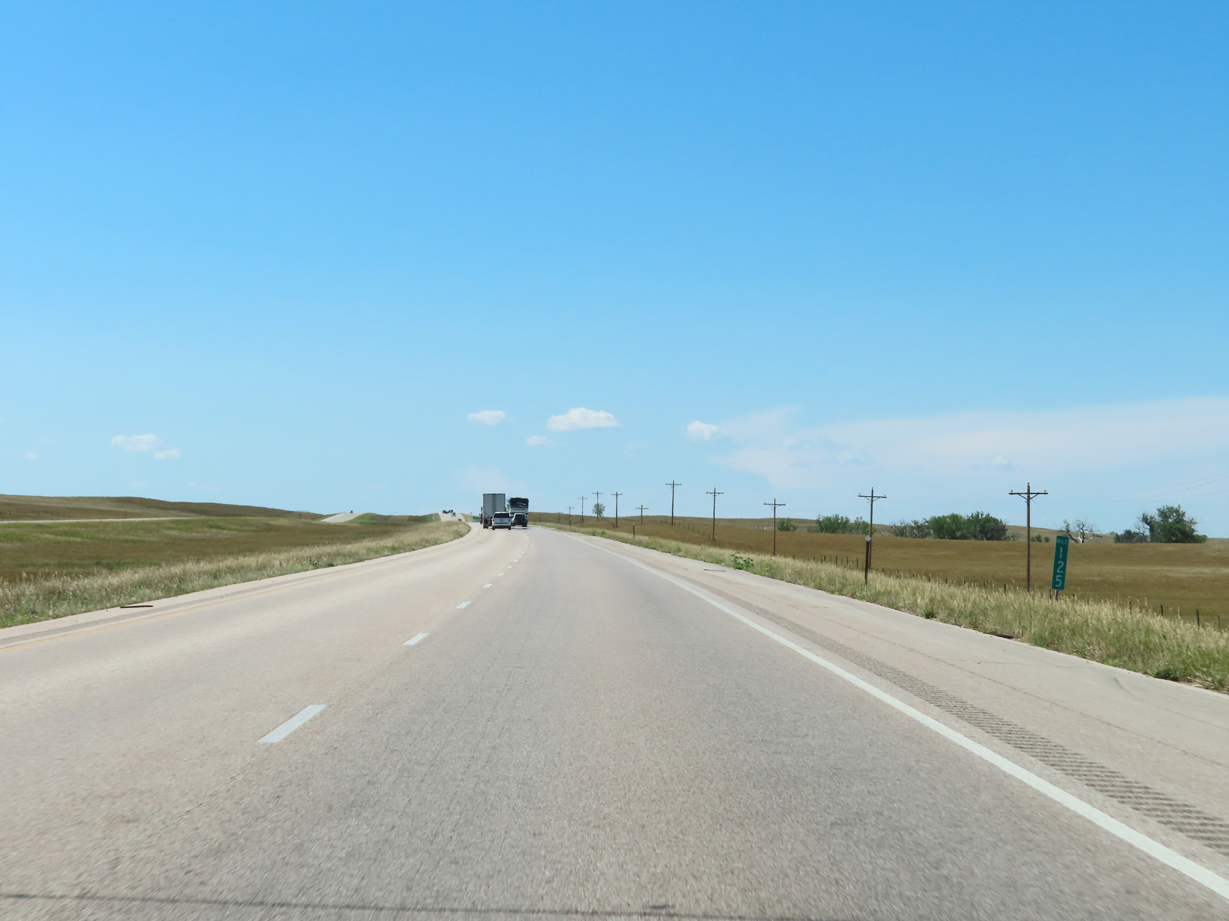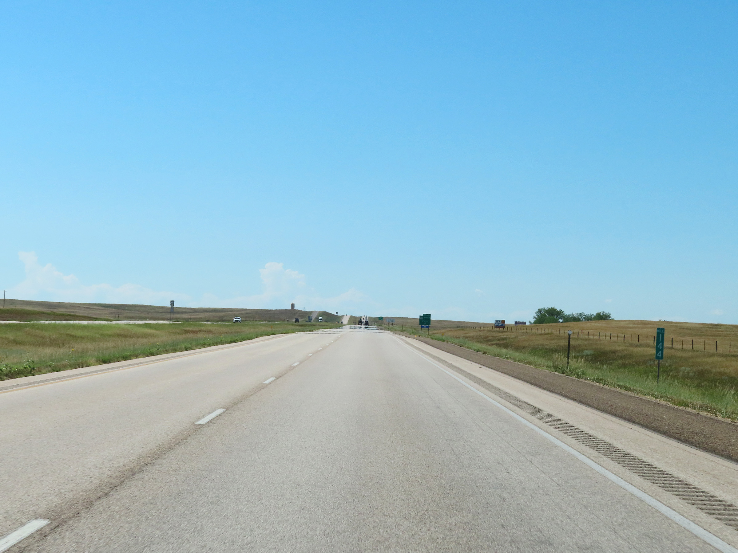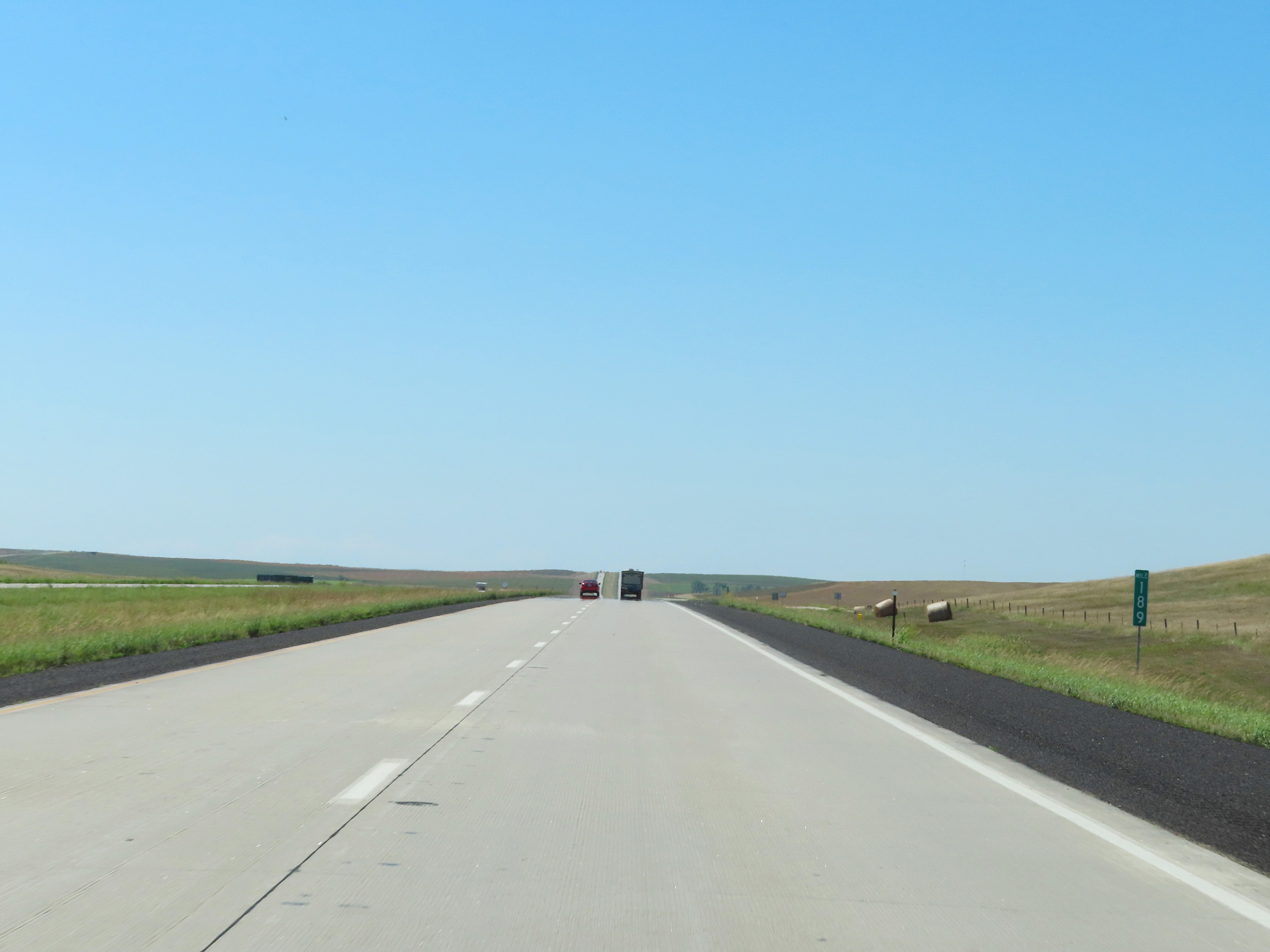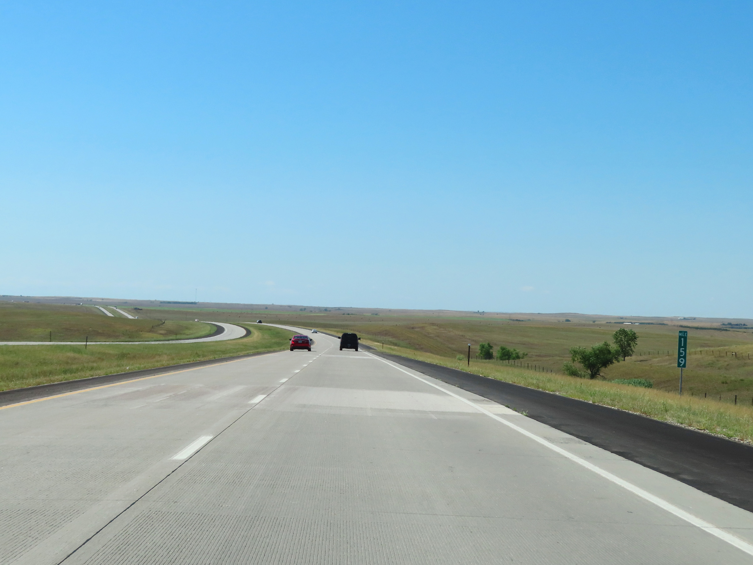 View on Interstate 90 West at mile marker 262, climbing out of the Missouri River valley. (Photo taken 8/16/22). |