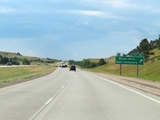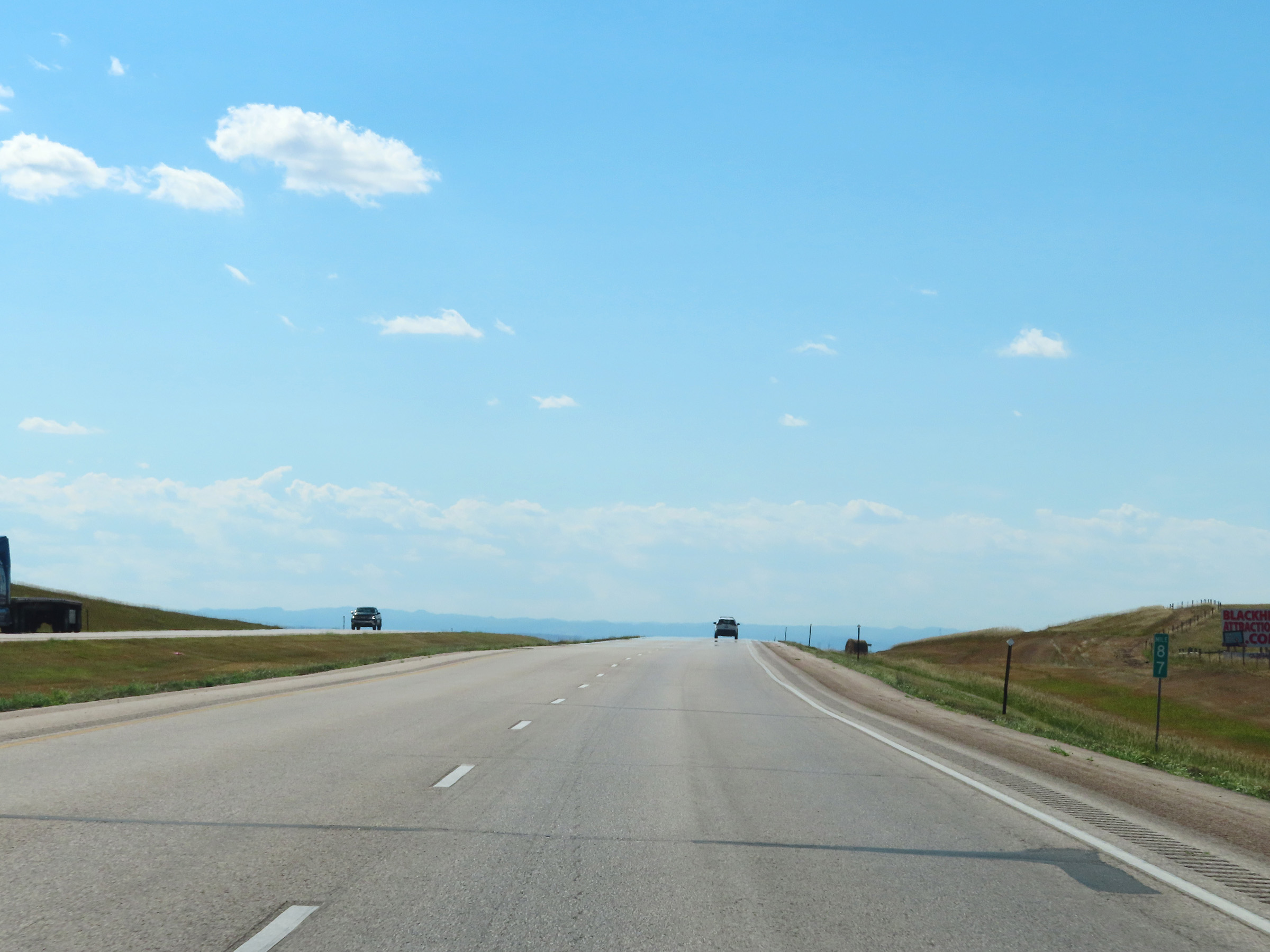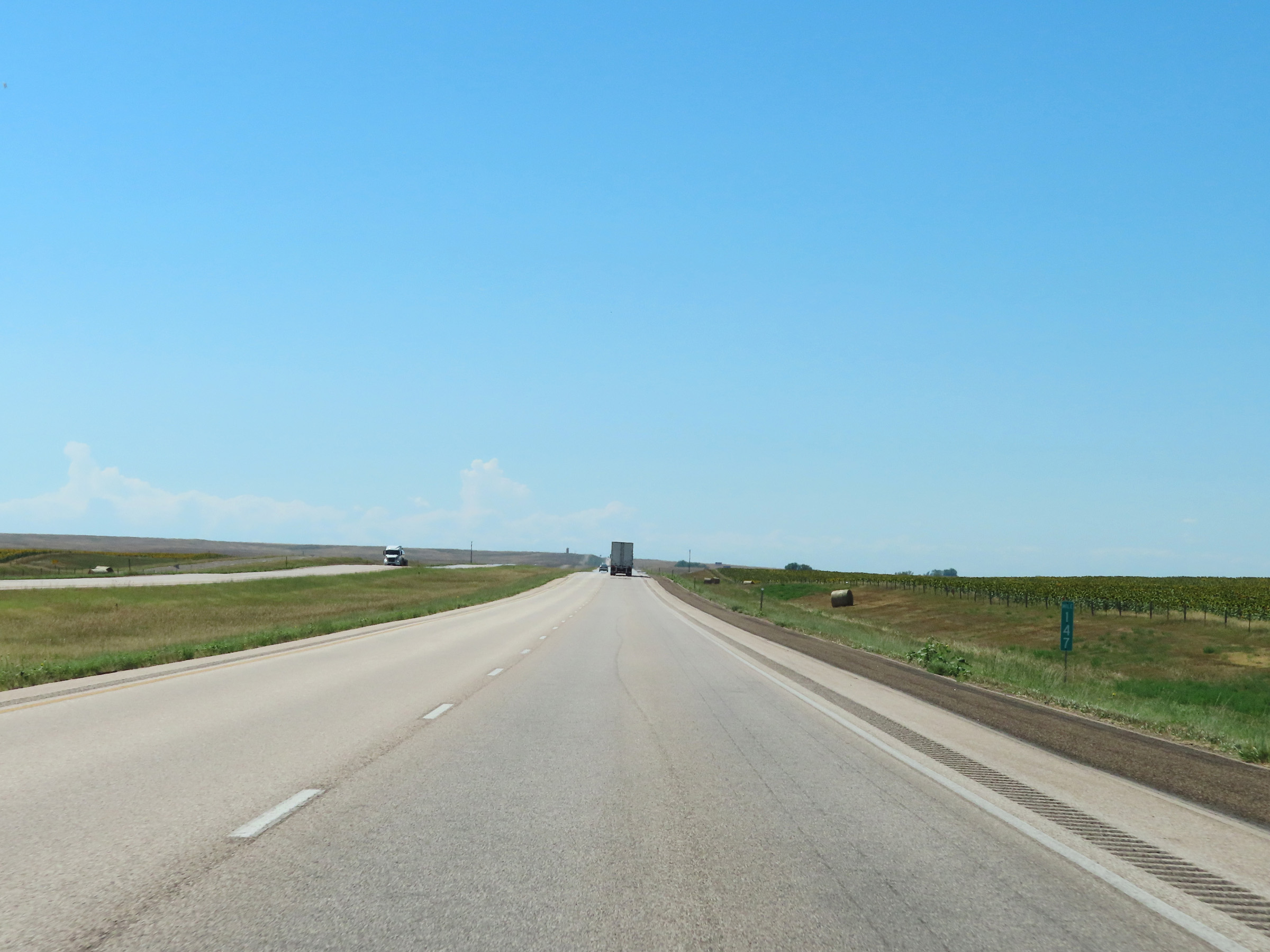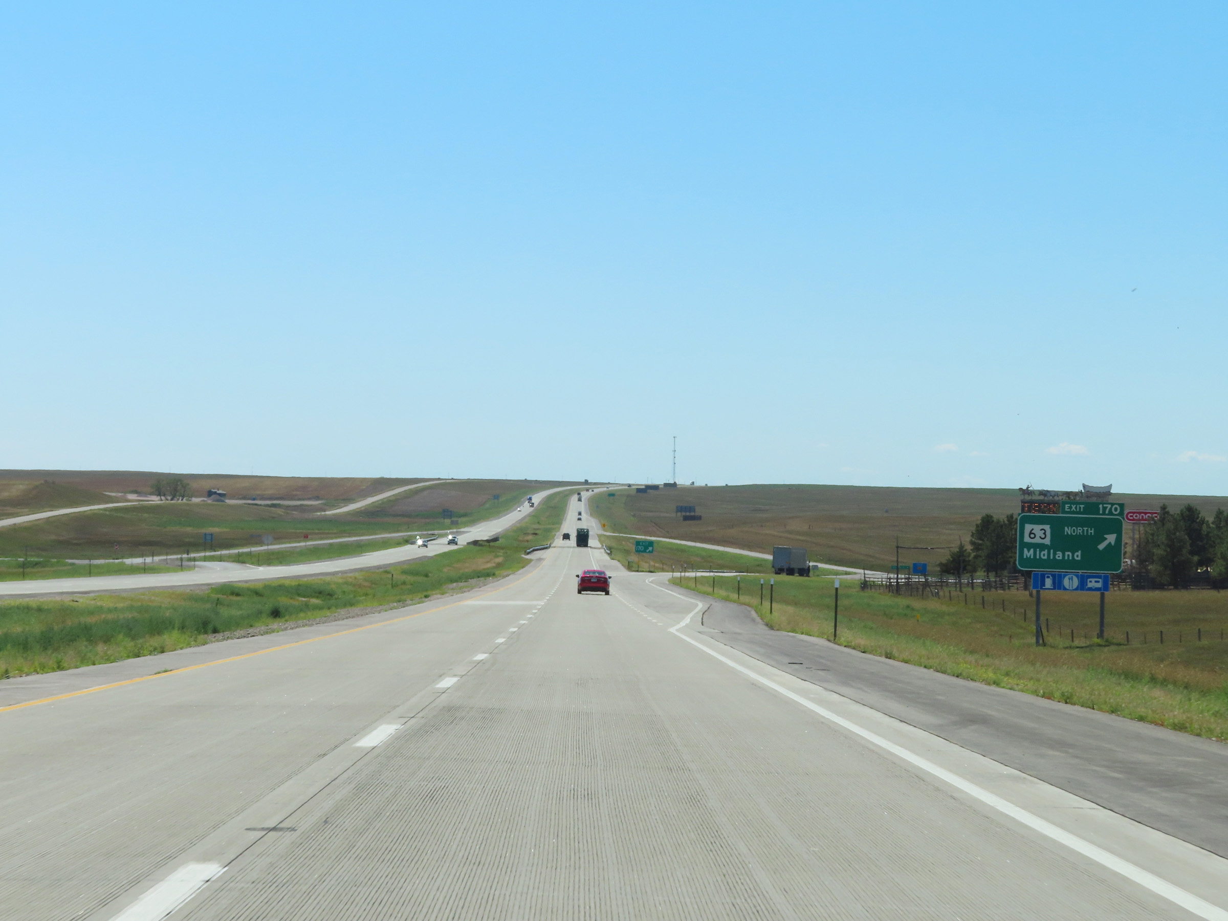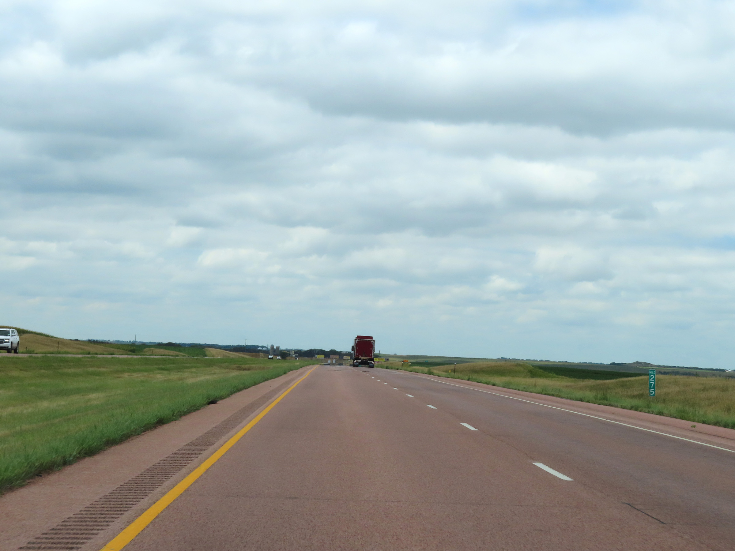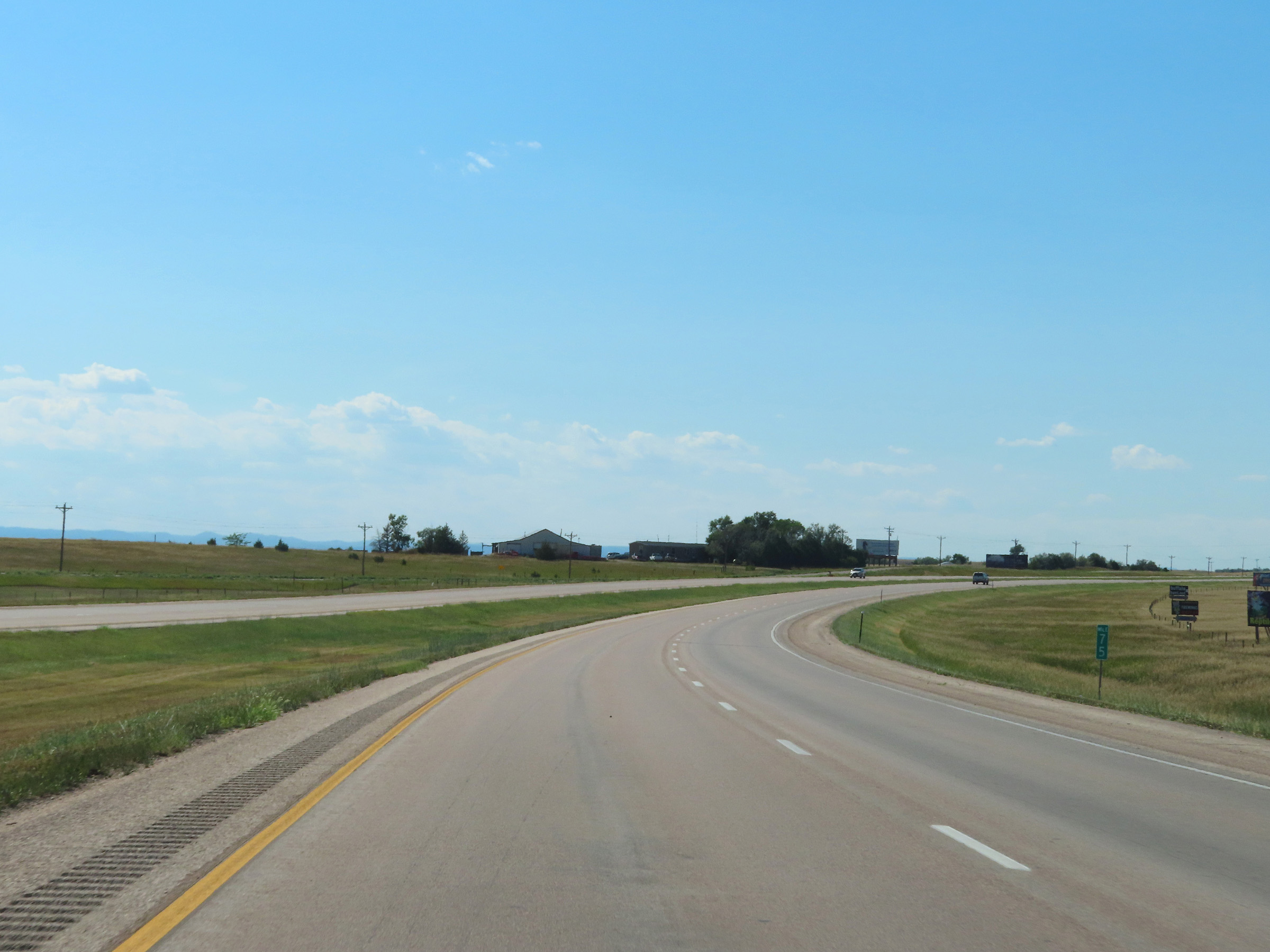 View on Interstate 90 West at mile marker 262, climbing out of the Missouri River valley. (Photo taken 8/16/22). |