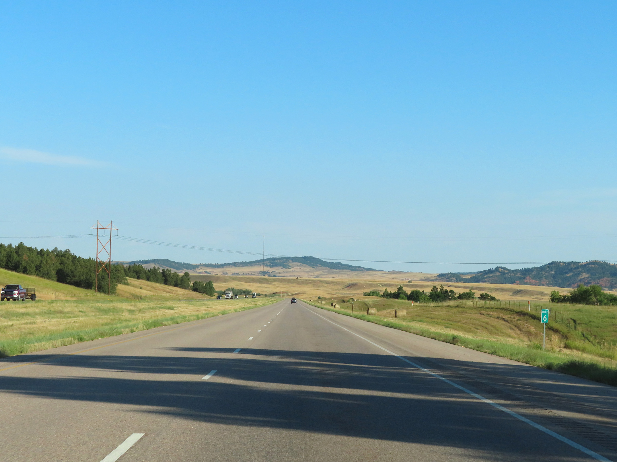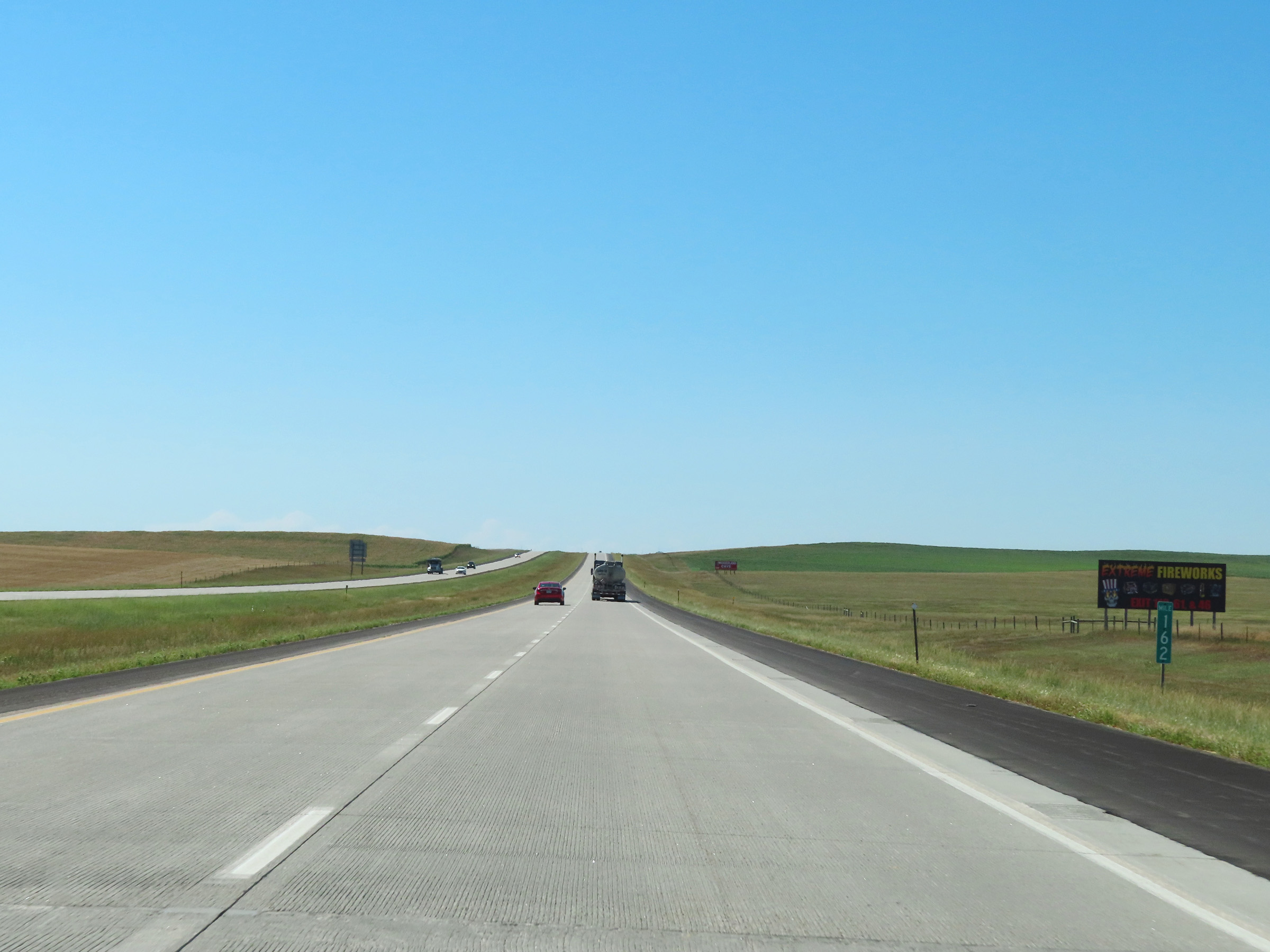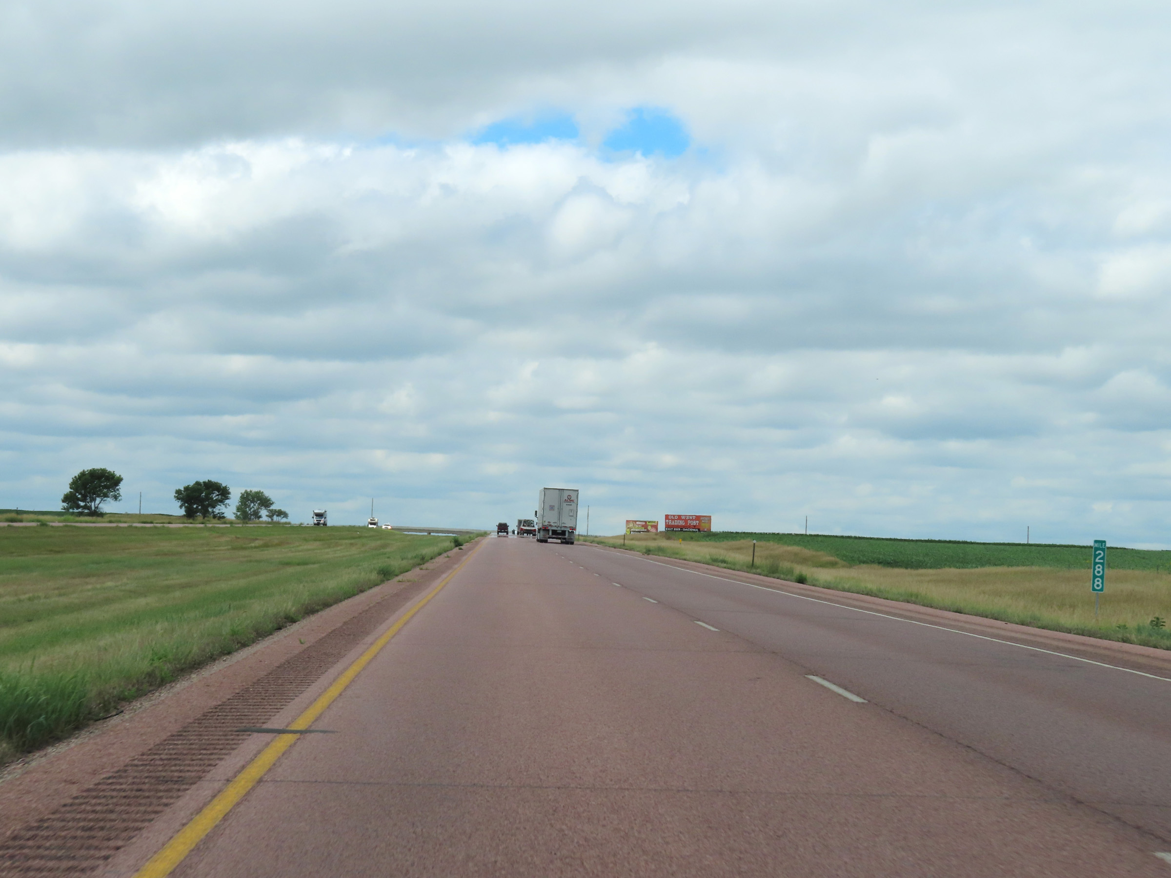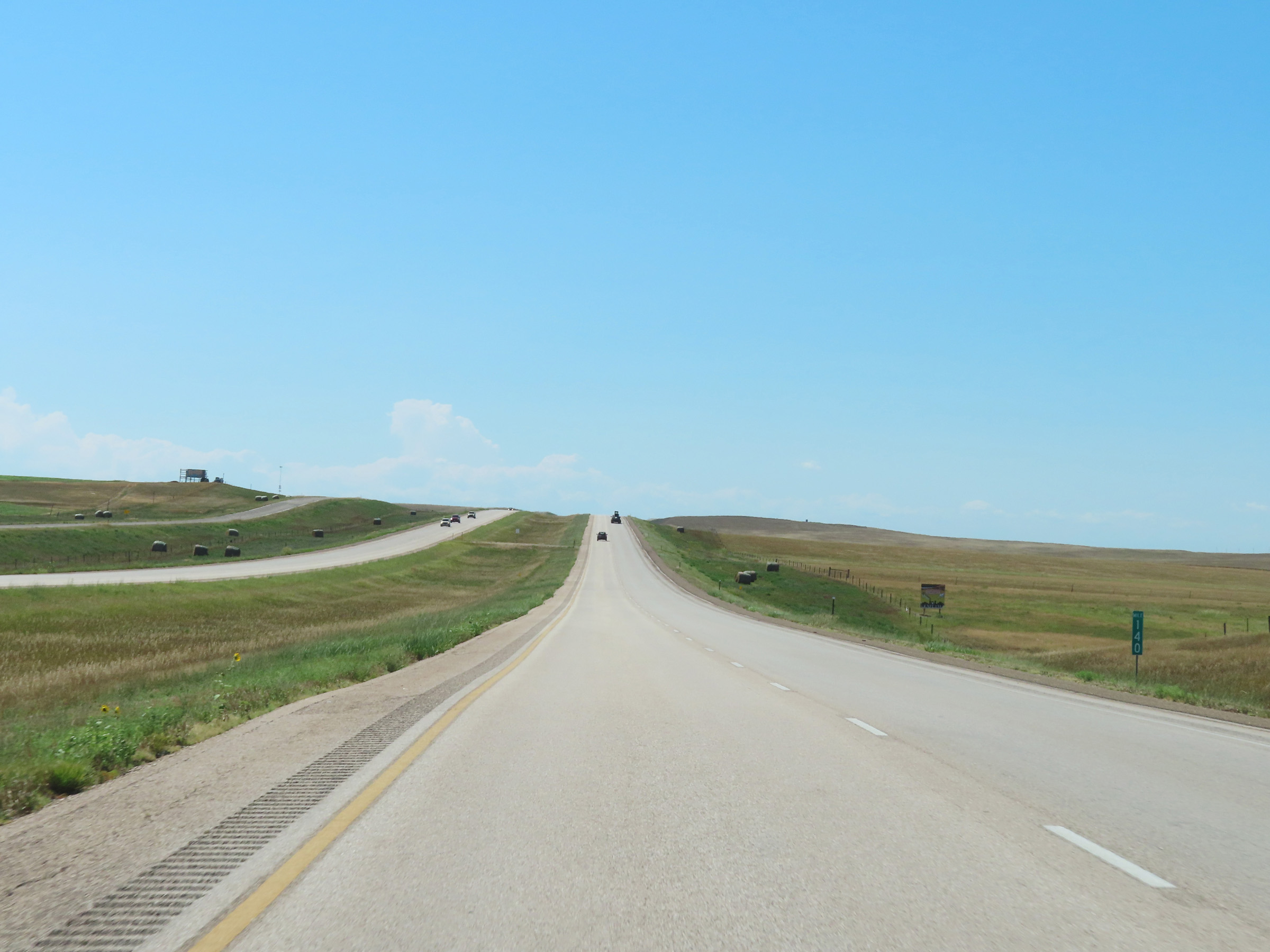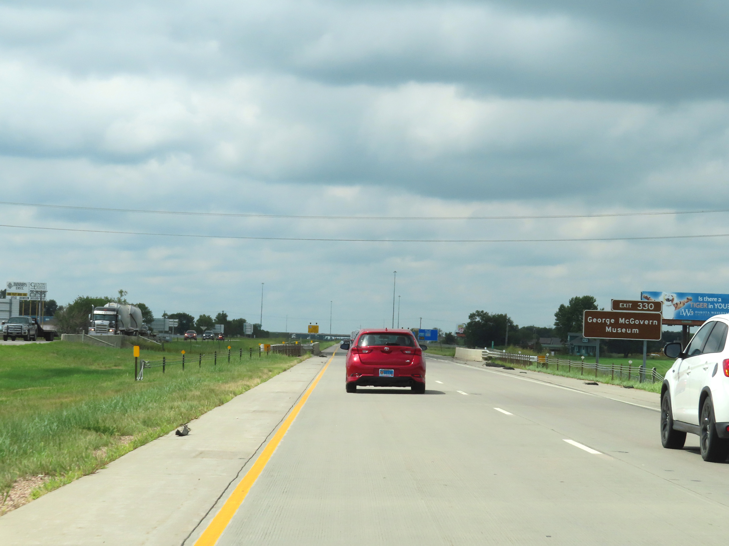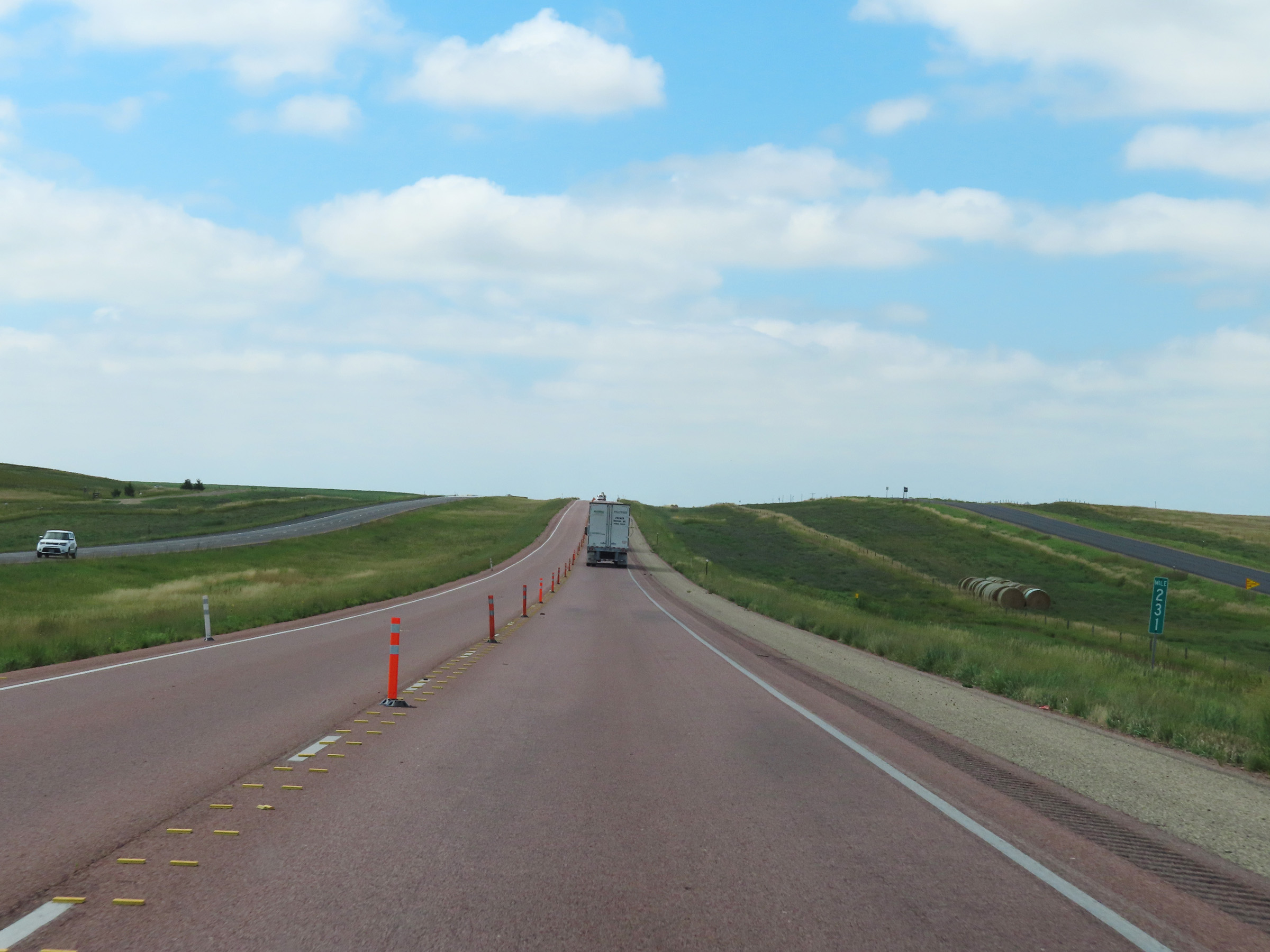View on Interstate 90 West at mile marker 262, climbing out of the Missouri River valley. (Photo taken 8/16/22). |