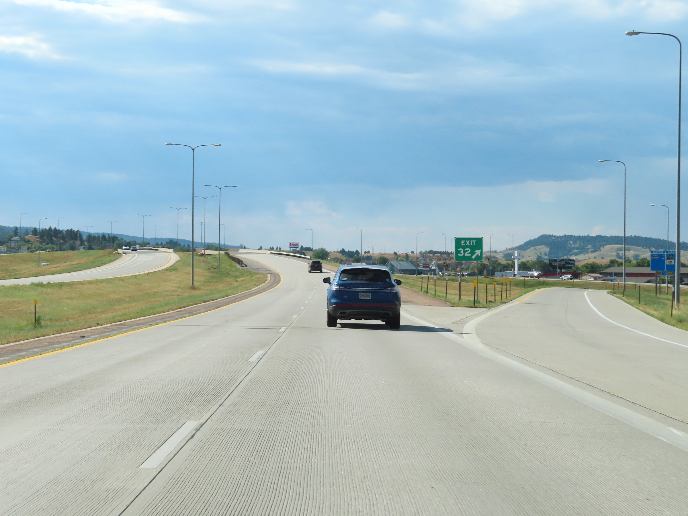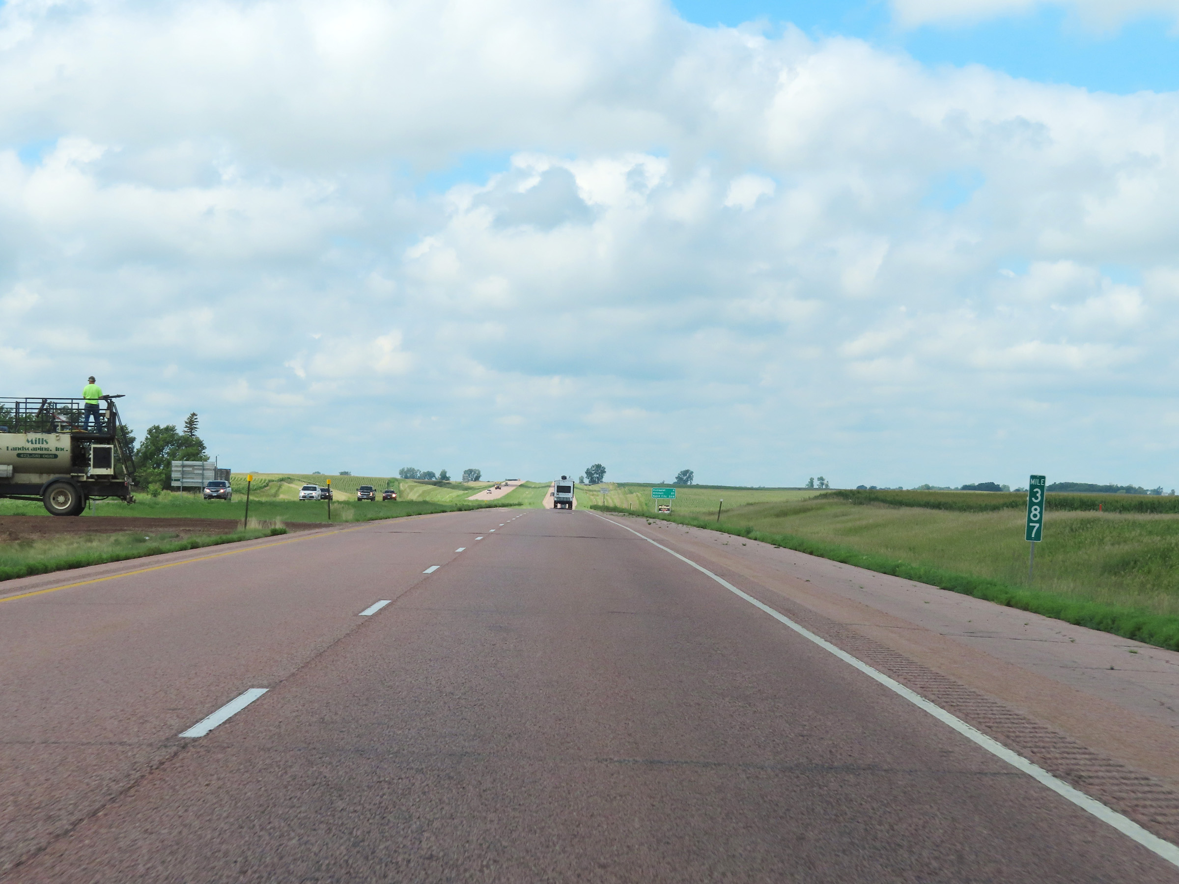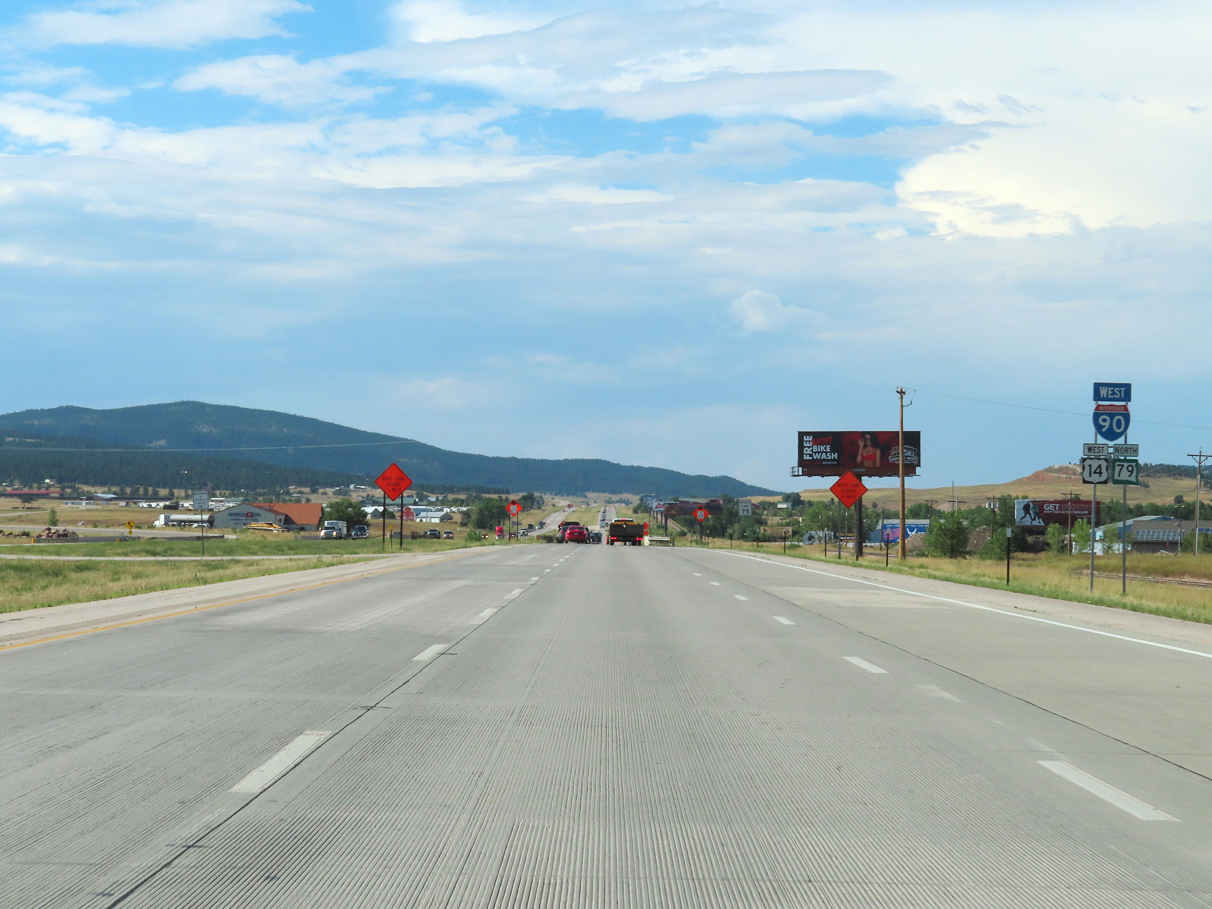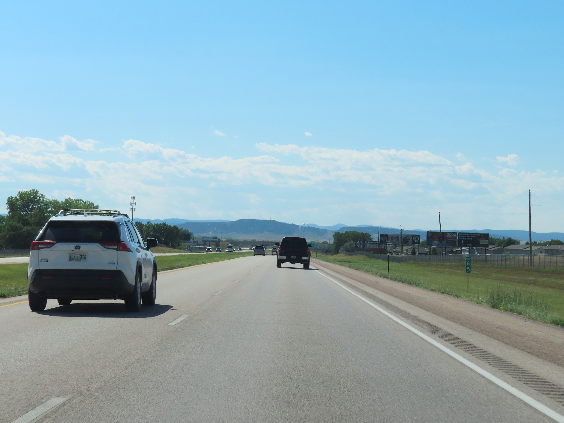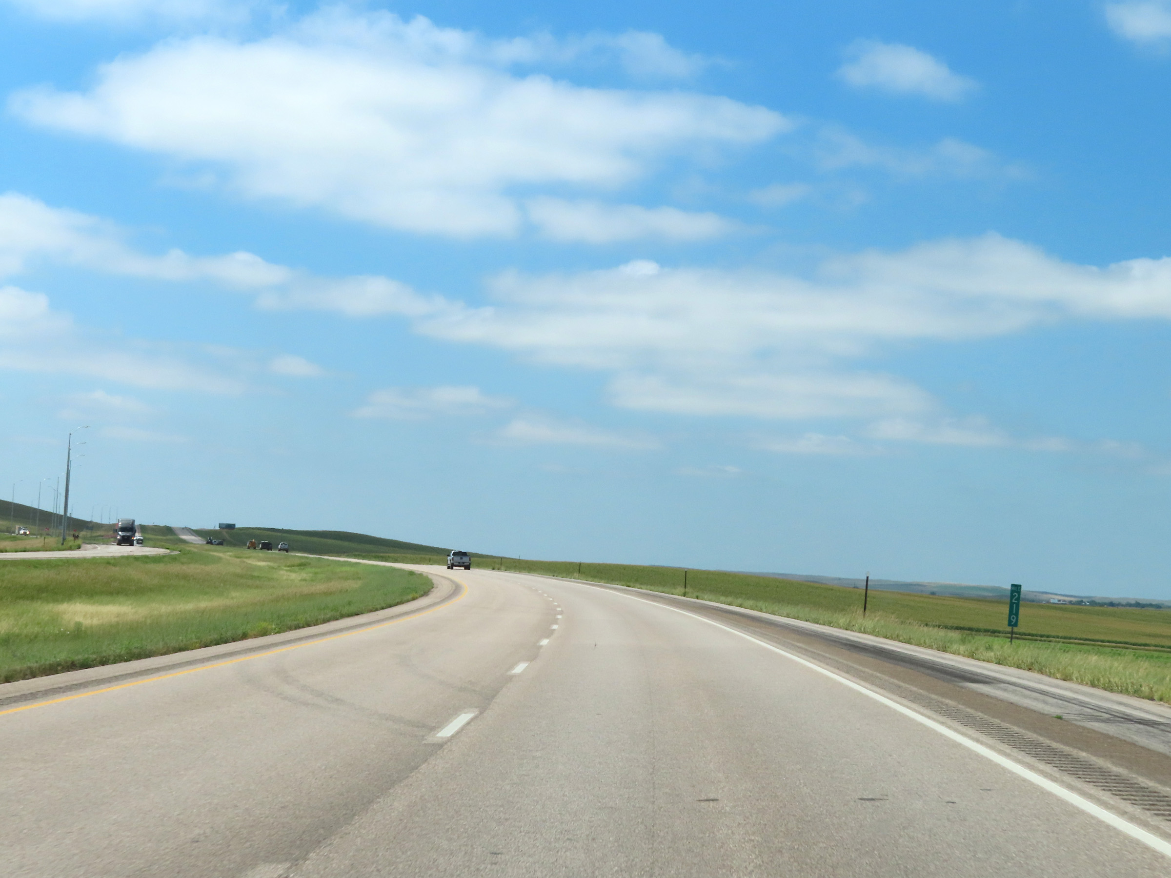 View on Interstate 90 West at mile marker 262, climbing out of the Missouri River valley. (Photo taken 8/16/22). |