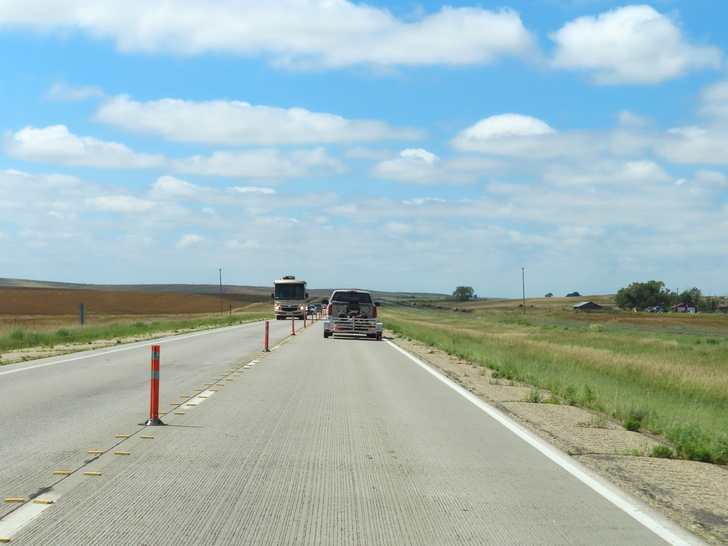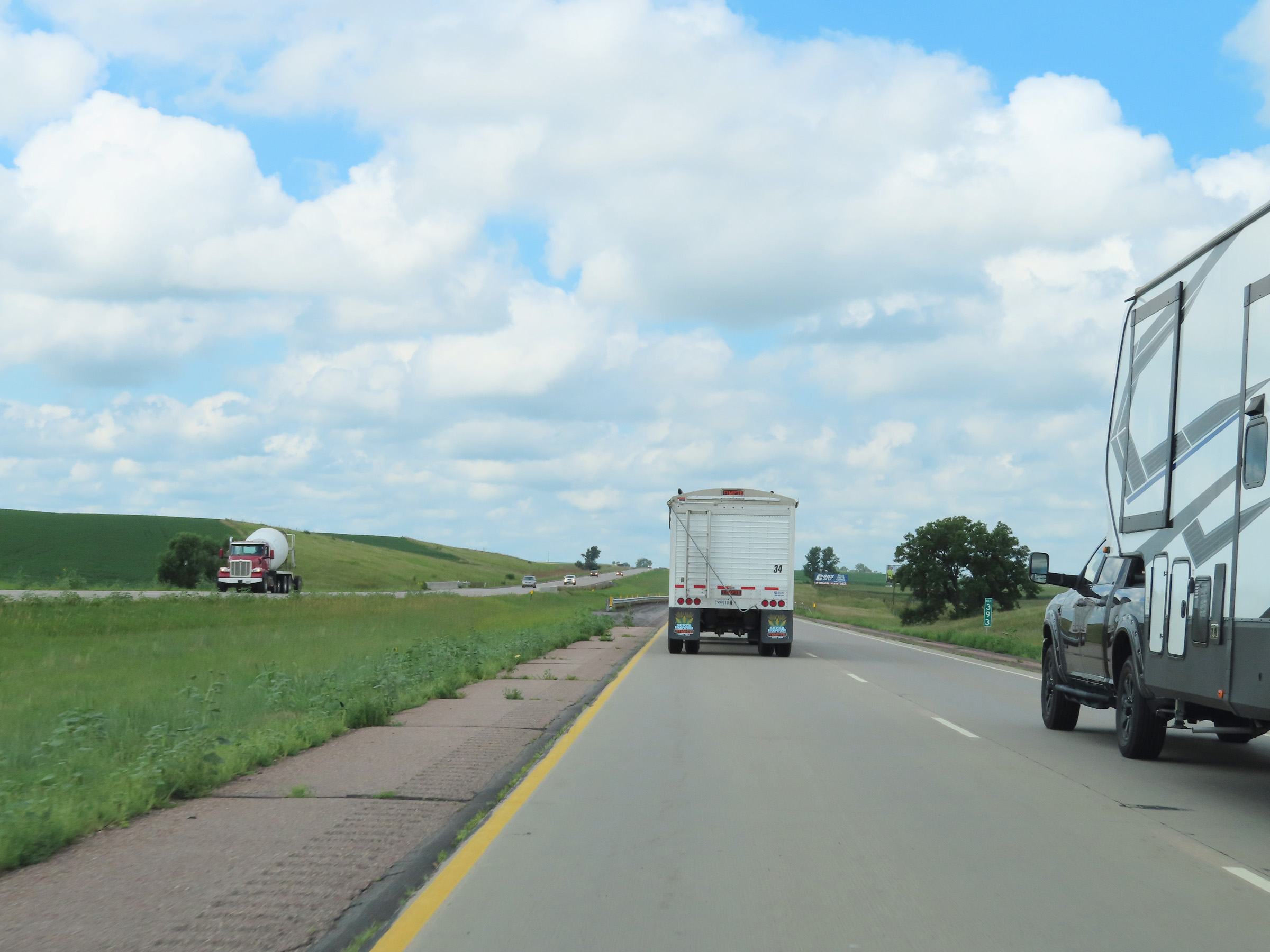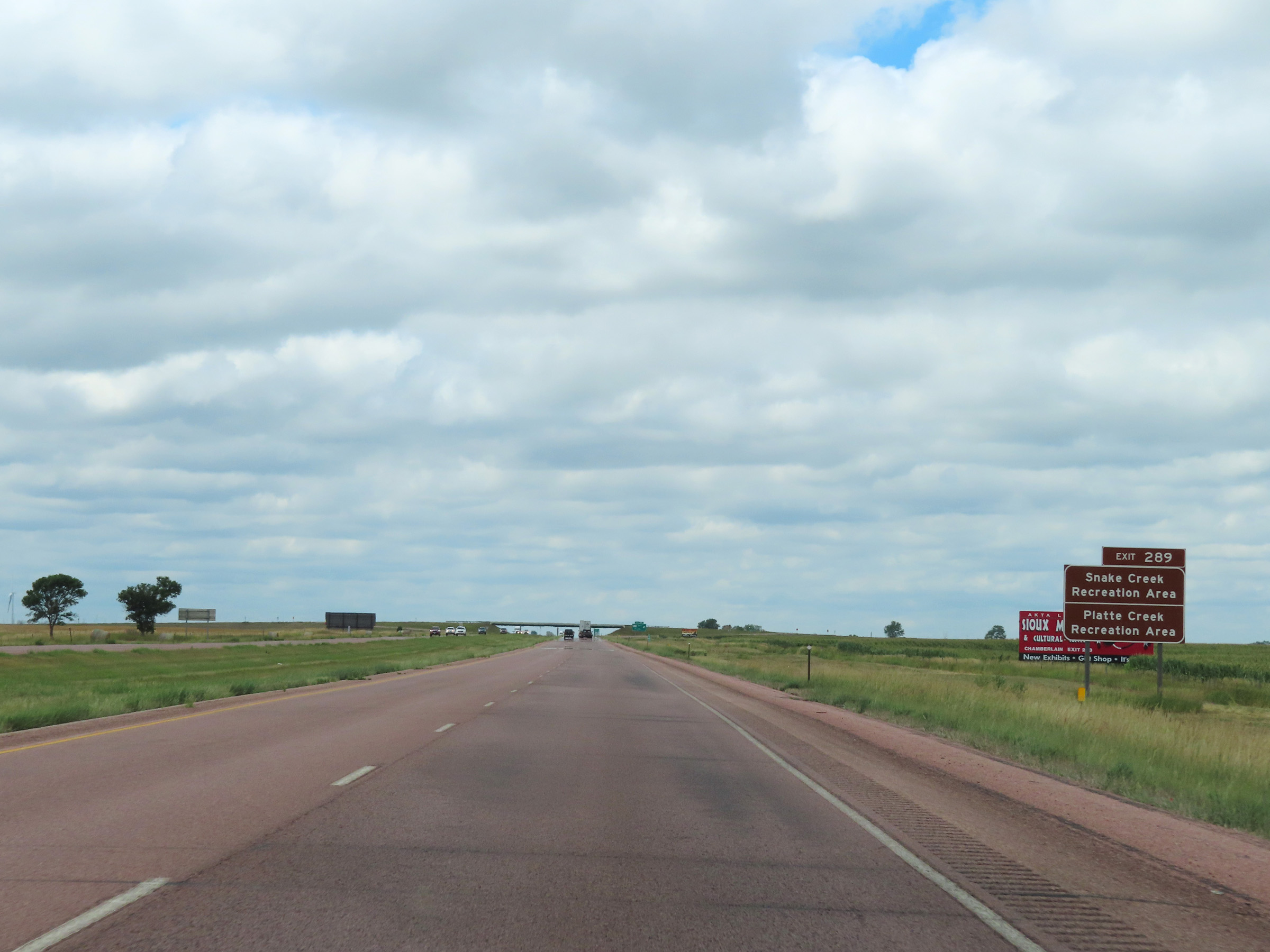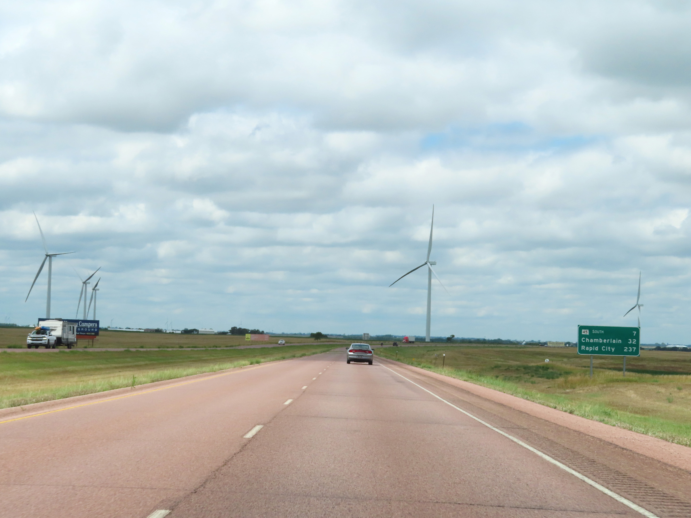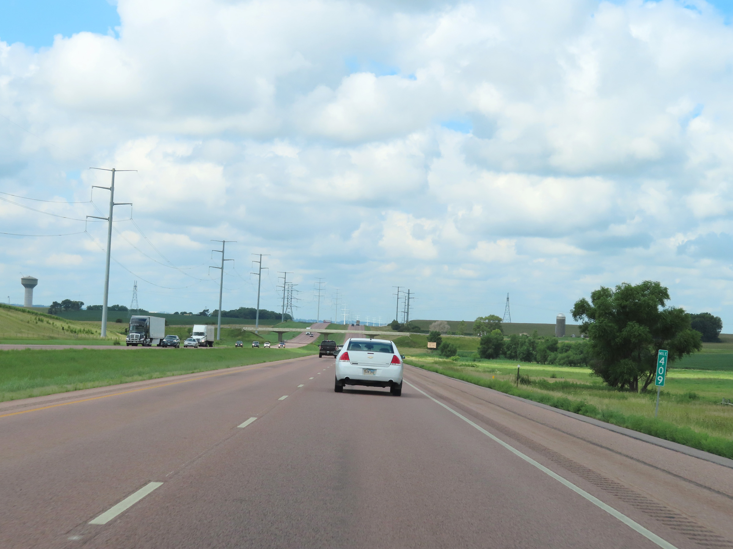 View on Interstate 90 West at mile marker 262, climbing out of the Missouri River valley. (Photo taken 8/16/22). |