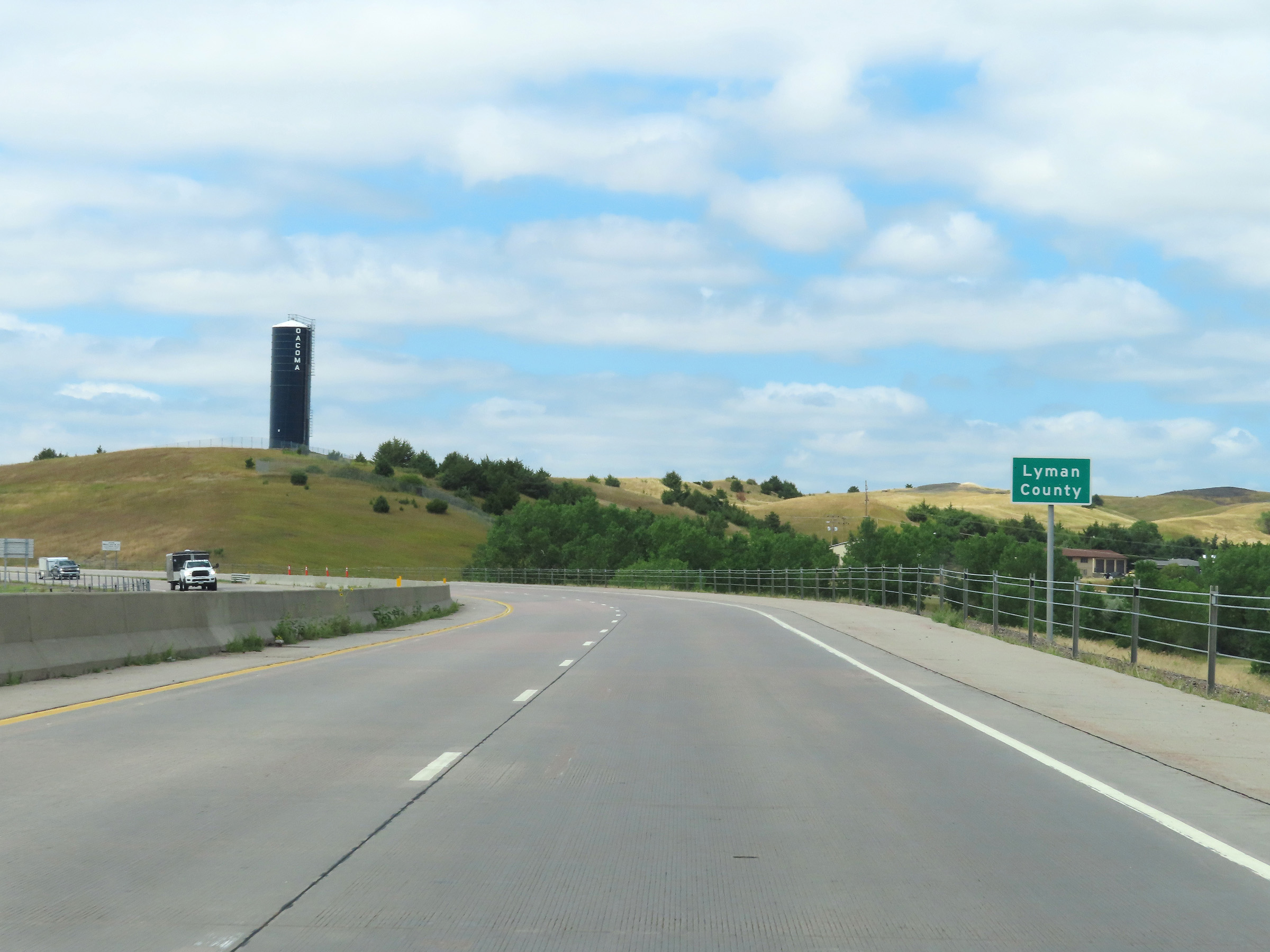 On the west side of the Missouri River and Lake Francis Case, Interstate 90 West enters Lyman County. (Photo taken 8/16/22). |
