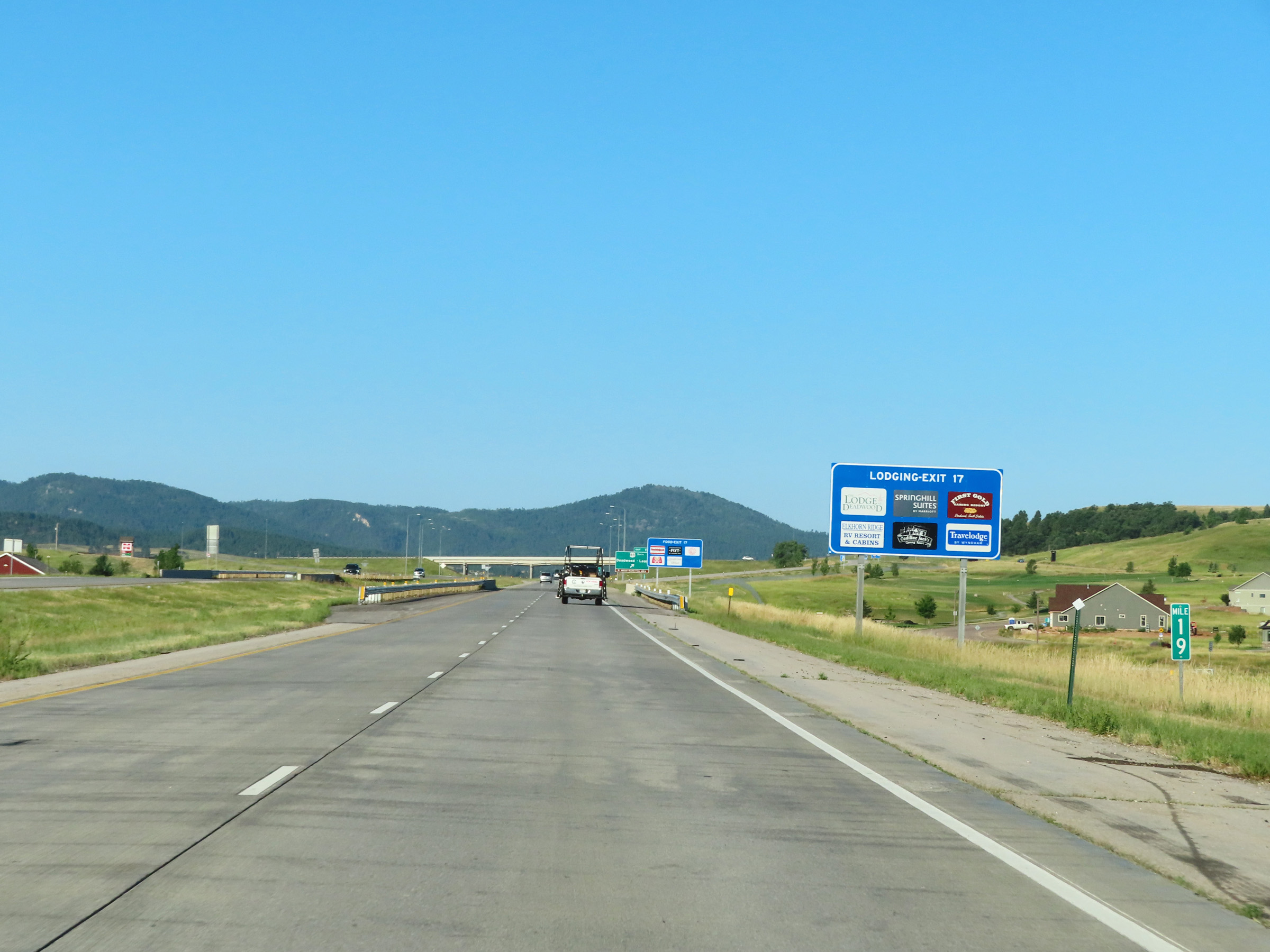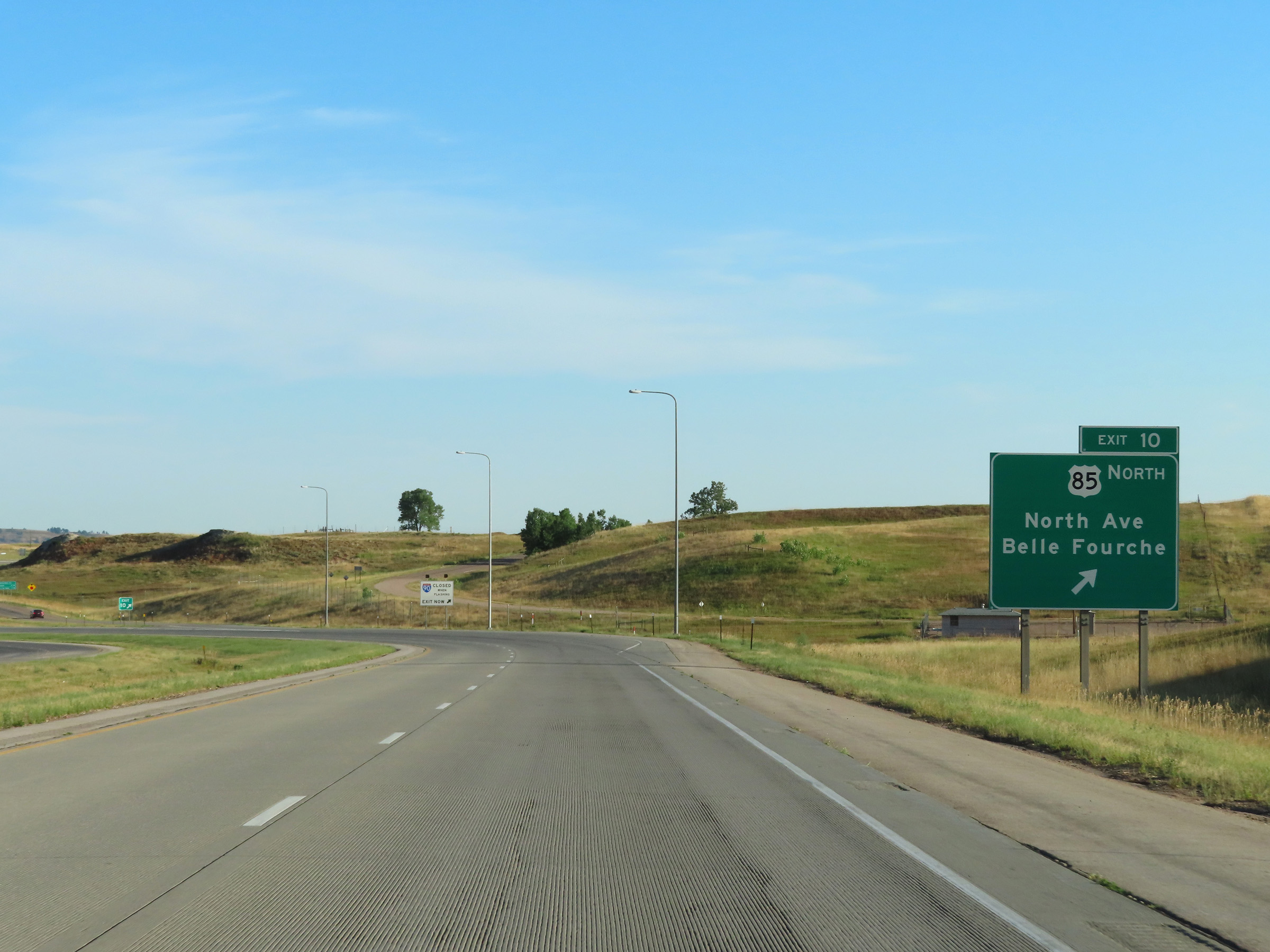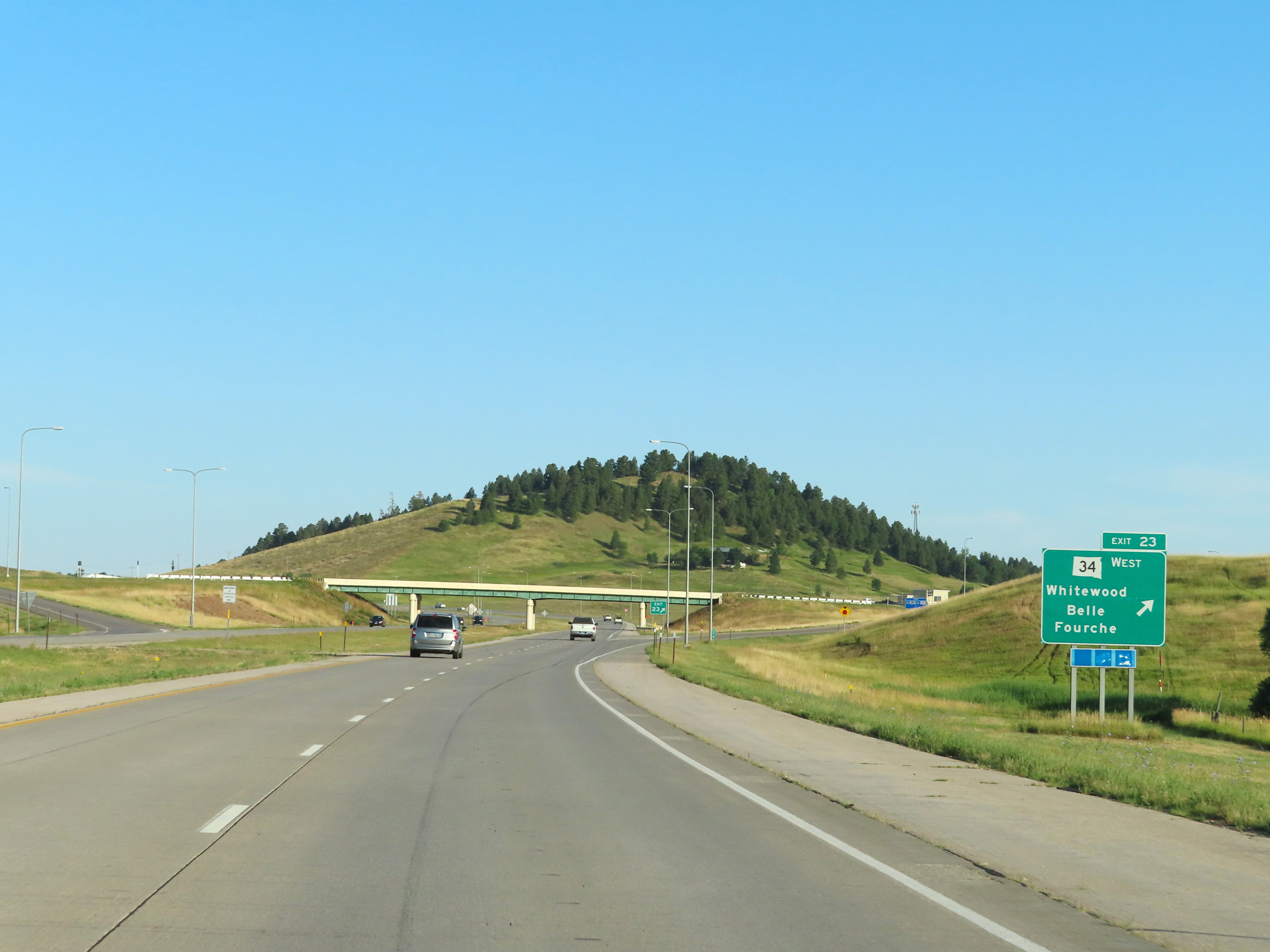 Interstate 90 West at Exit 212: US 83 North / SD 53 - Pierre / State Capitol / Fort Pierre (Photo taken 8/16/22). |