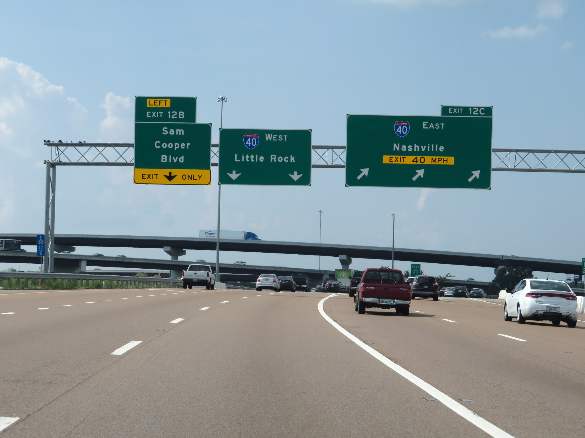 View on Interstate 240 East at mile marker 12.6, as its junction with Interstate 40 on the east side of Memphis comes into view in the distance. (Photo taken 8/12/19). |