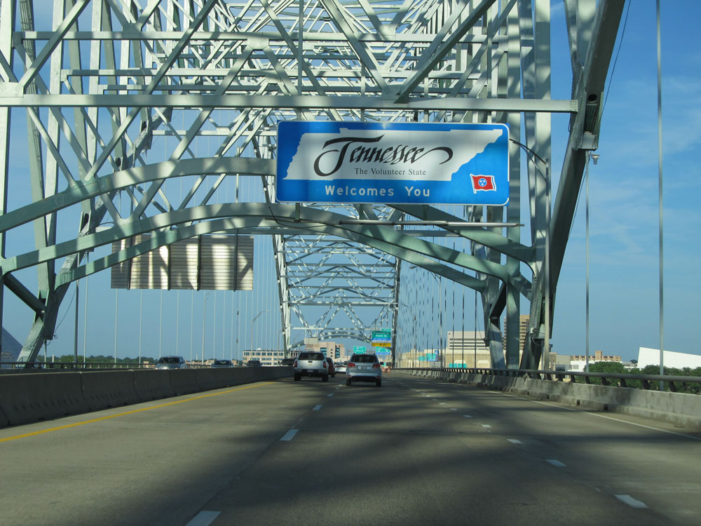 Tennessee welcome sign as Interstate 40 East enters the Volunteer State from Arkansas by crossing the Mississippi River. (Photo taken 5/23/15).