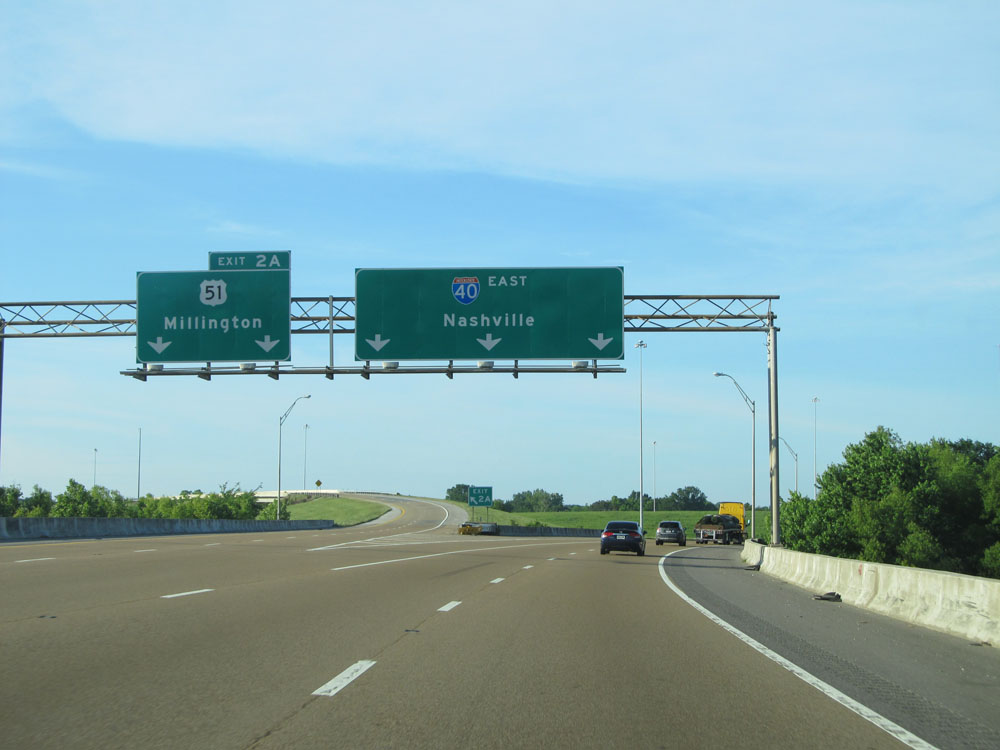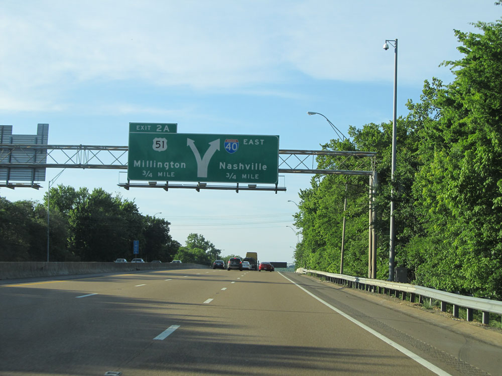 Interstate 40 East at Exit 2A: US 51 - Millington (Photo taken 5/23/15).