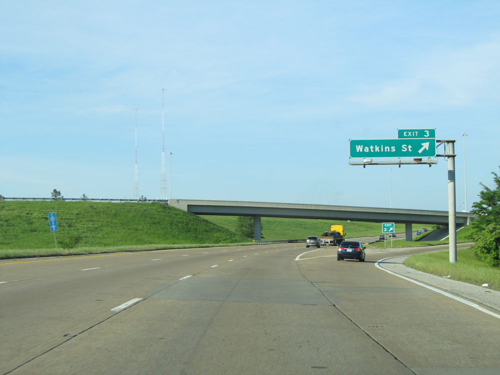 Interstate 40 East at Exit 3: Watkins St (Photo taken 5/23/15).