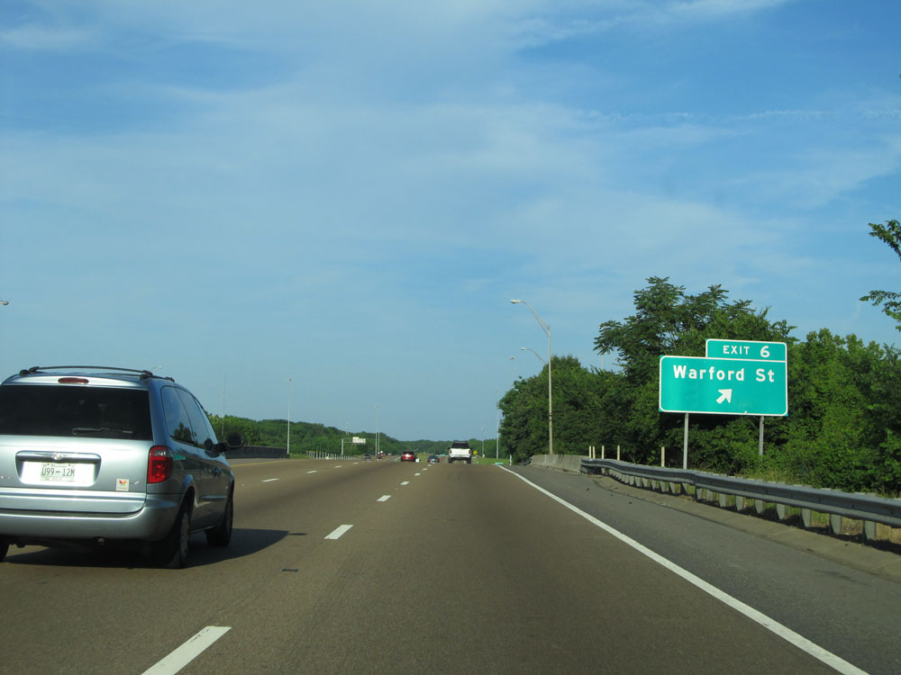 Interstate 40 East at Exit 6: Warford St (Photo taken 5/23/15).