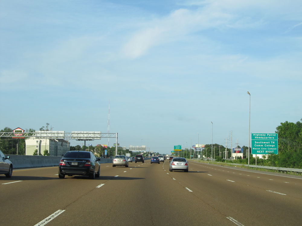 Take Exit 12 to Highway Patrol Headquarters and Southwest TN Community College Macon Cove Campus. (Photo taken 5/23/15).